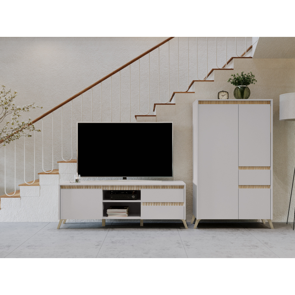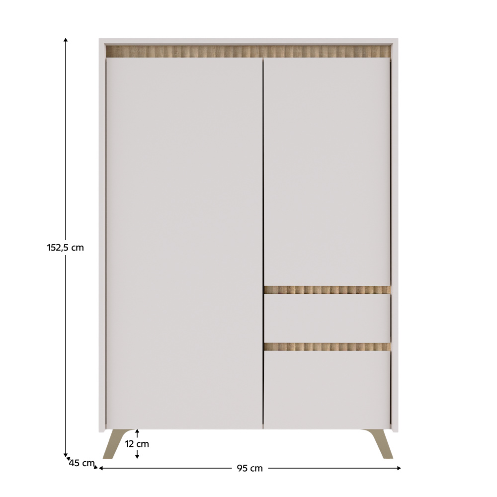 Materiál: laminovaná DTD/fóliovaná MDF/PVC fólie Barva: kašmír/dub sonoma Rozměry (ŠxHxV): 95x45x152,5 cm Tloušťka materiálu: 1,6-1,9 cm Dvoudveřová Výklopná skříňka Jedna zásuvka Police Na nožičkách Barva nožiček: přírodní Výška nožiček: 12 cm Plnovýsuvné kuličkové ložisko Panty Hrana : papír impregnovaný termosetovými polymery/PVC Tloušťka materiálu ABS: 0,5 mm Tloušťka dřevovláknité desky zadní strana/dno zásuvky: 0,3 cm Barva zadní strana/dno zásuvky: bílá Dekorativní frézování Bez úchytek Moderní design Dodáváno v demontu