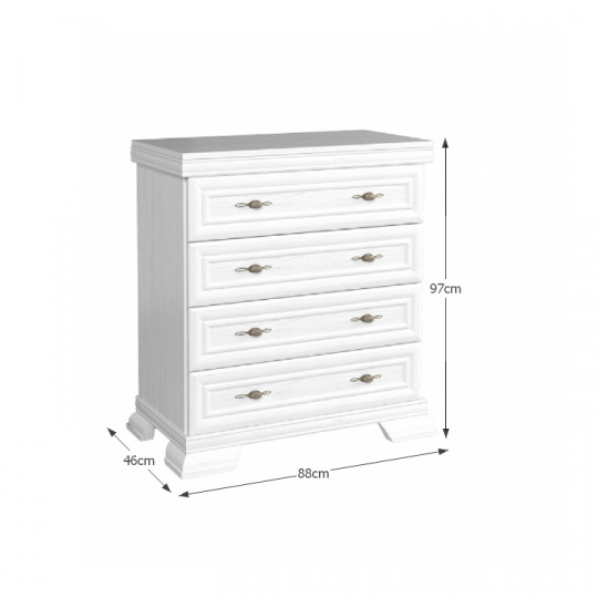 Komoda KK2 KORA. Barevné provedení sosna andersen. Materiál laminovaná DTD, MDF, kov. Rozměry (ŠxHxV): 88x46x97 cm Tloušťka materiálu korpus: 15 mm Tloušťka materiálu vrchní desky: 22 mm Tloušťka materiálu dolní desky: 22 mm Výška spodního prostoru od podlahy: 10,5 cm