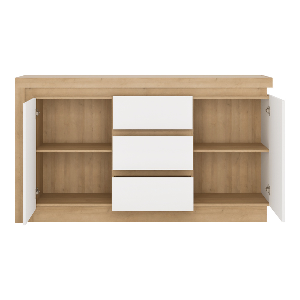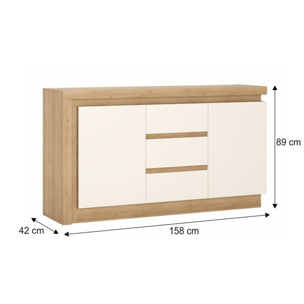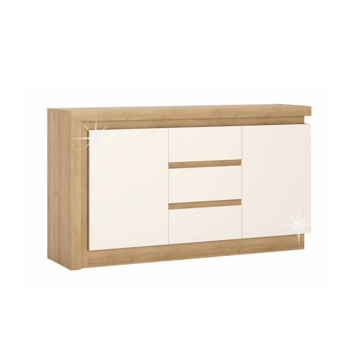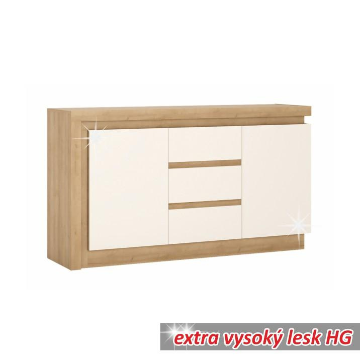 Komoda LYOK01, dub riviera / bílá s extra vysokým leskem, LEONARDO