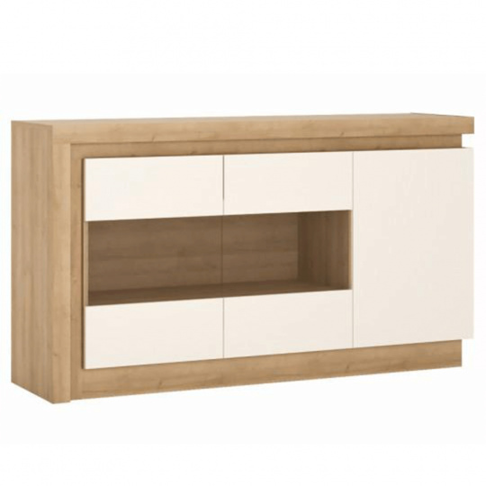 Komoda LYOK02, dub riviera / bílá s extra vysokým leskem, LEONARDO