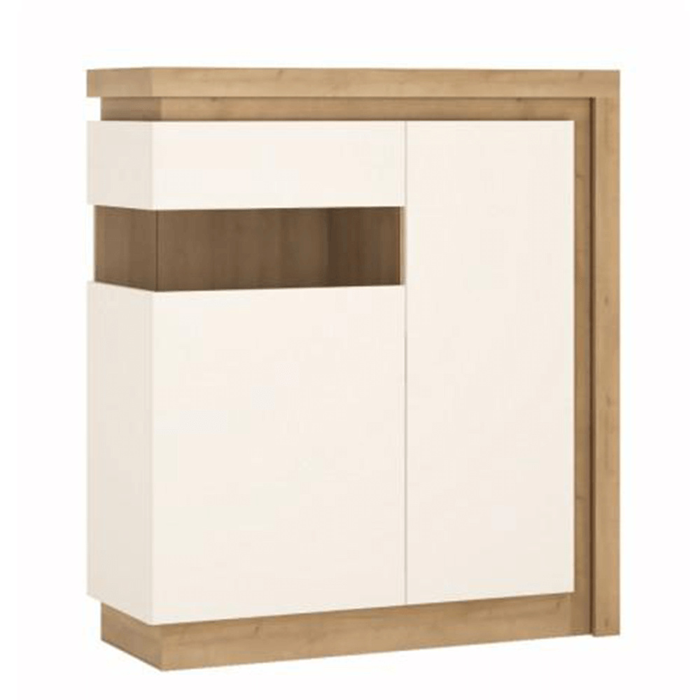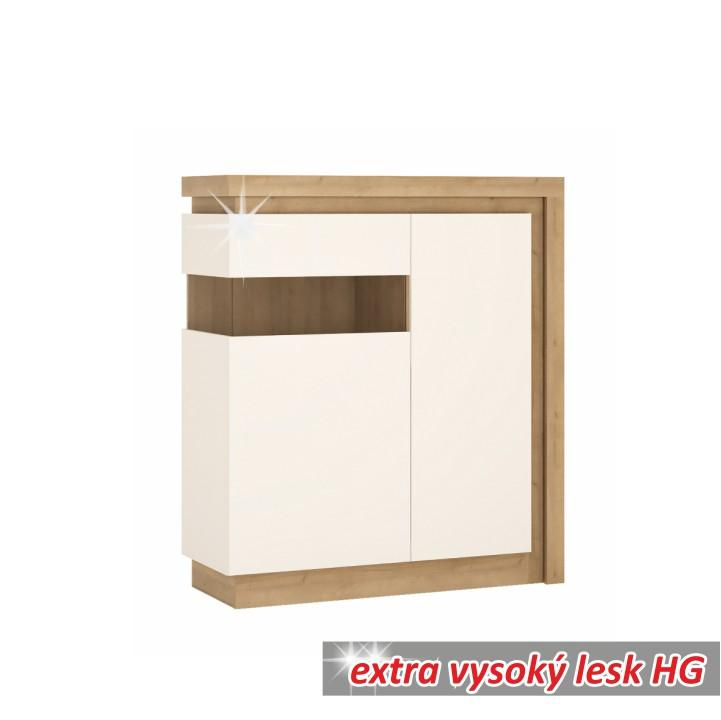 Komoda LYOV04L, dub riviera / bílá s extra vysokým leskem, LEONARDO