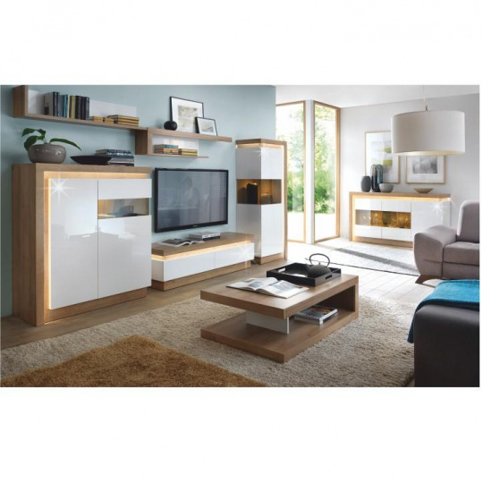 Komoda LYOV04P, dub riviéra/bílá s extra vysokým leskem, LEONARDO