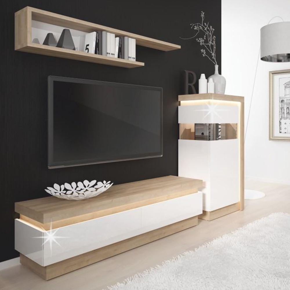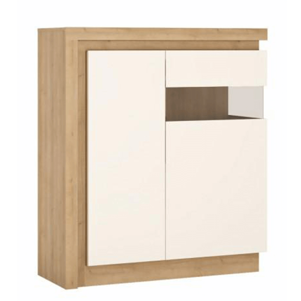 Komoda LYOV04P, dub riviéra/bílá s extra vysokým leskem, LEONARDO