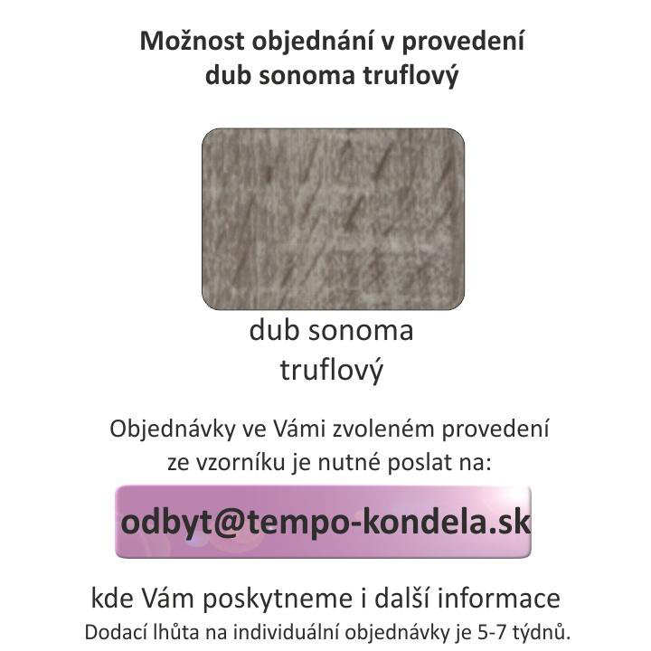 RTV stolek 2D TOPTY TYP 15 Materiál: DTD laminovaná Provedení: bílá / dub sonoma Rozměry (ŠxHxV): 120x42x46 cm Tloušťka materiálu korpus: 16 mm Tloušťka materiálu vrchní desky: 32 mm Dodávané v demontu. Hmotnost: 26.5kg