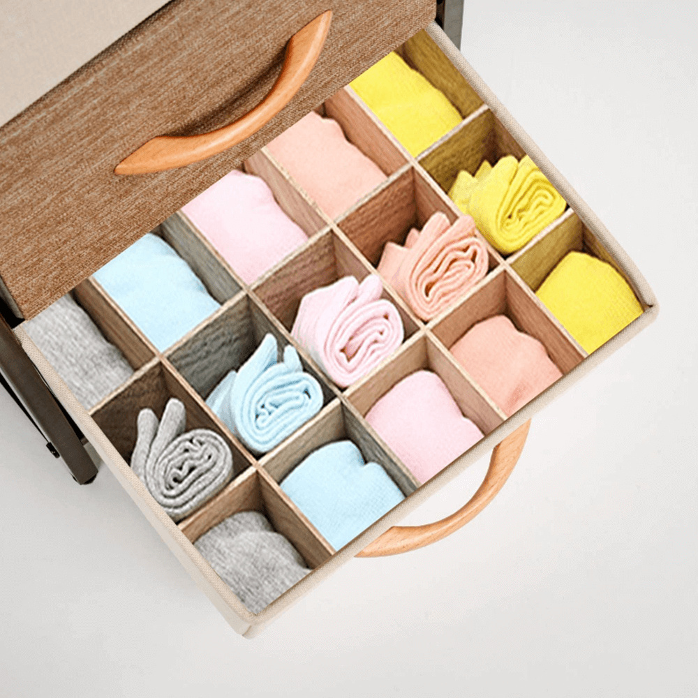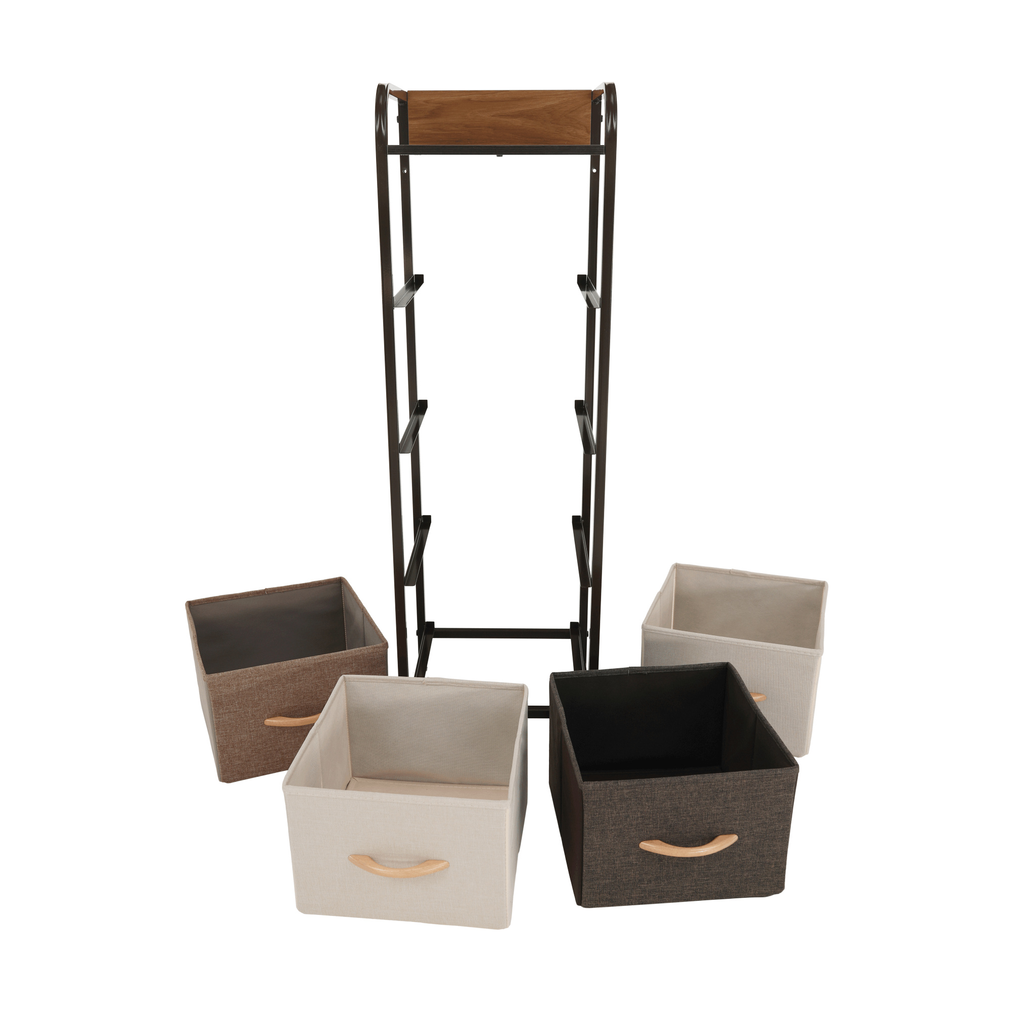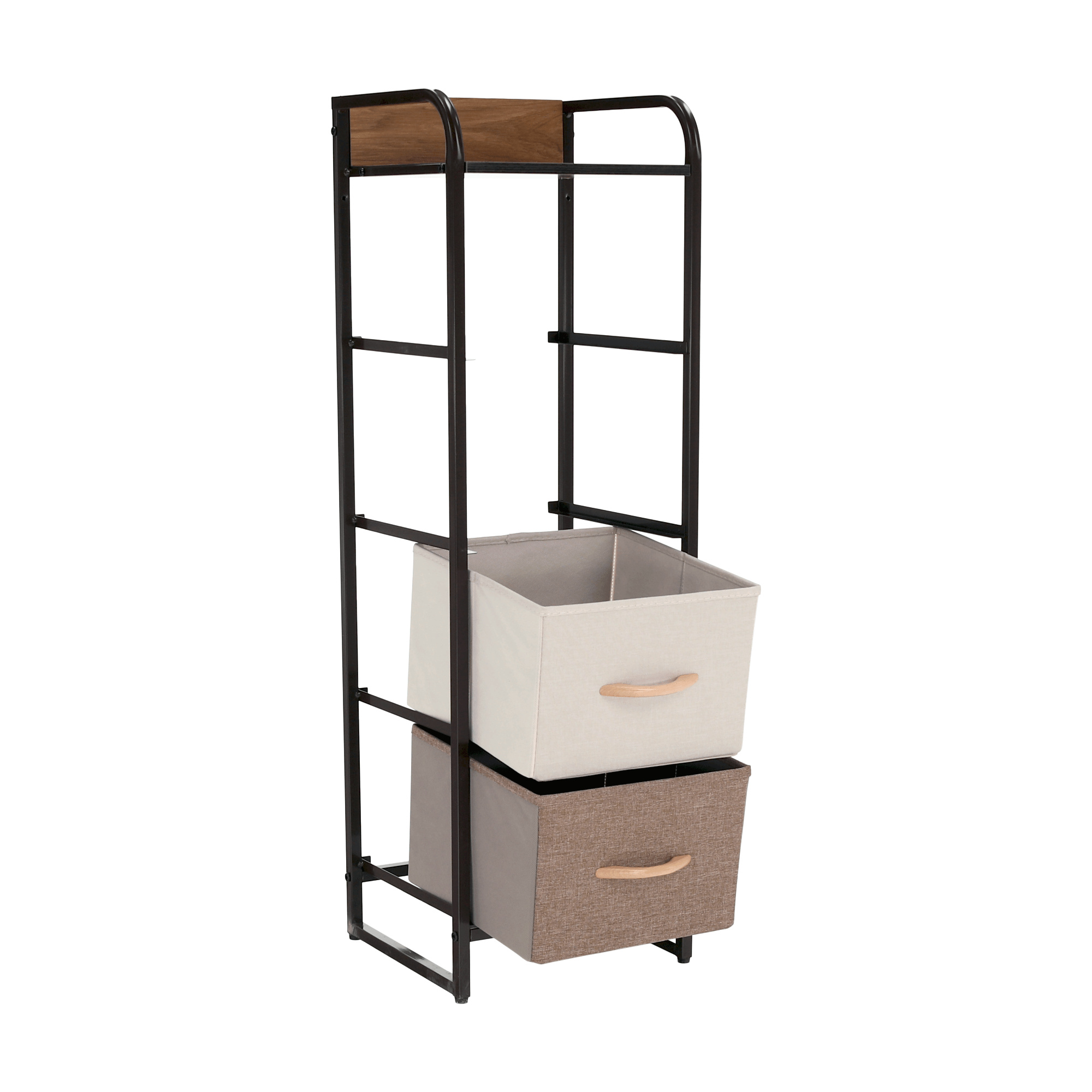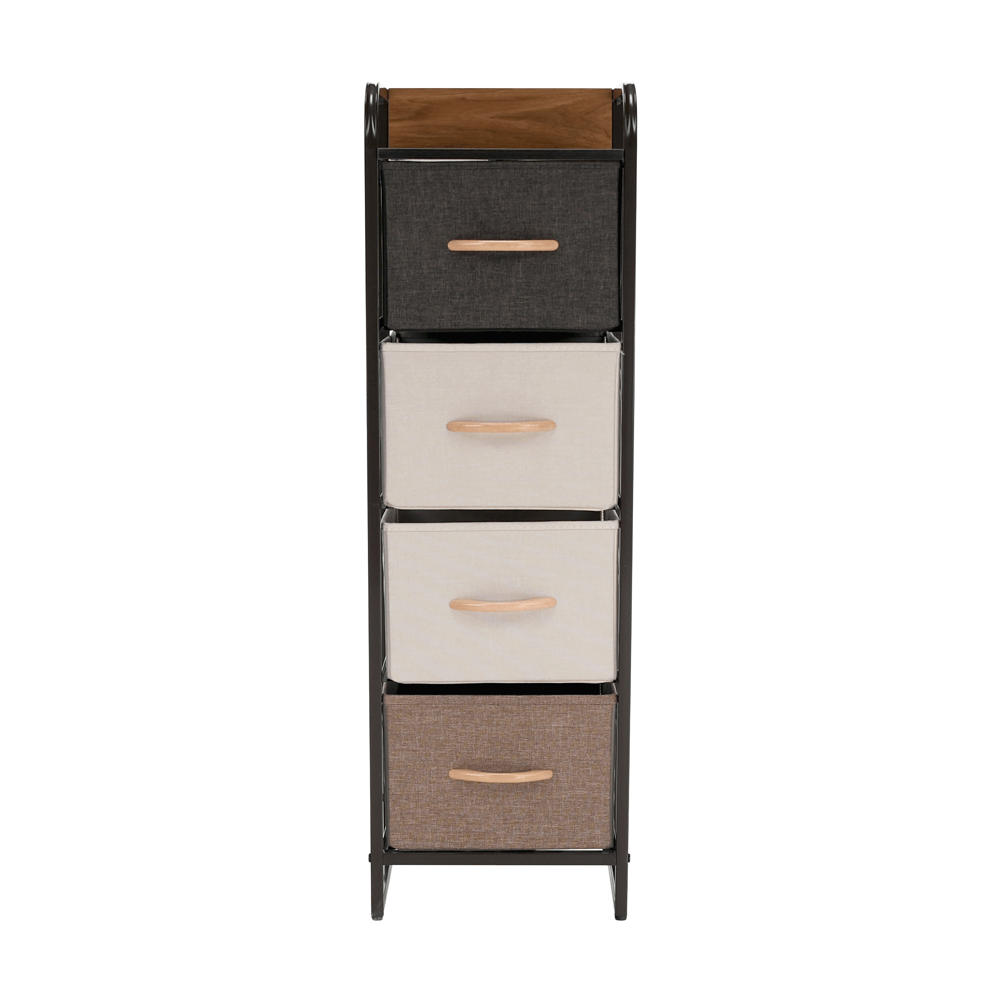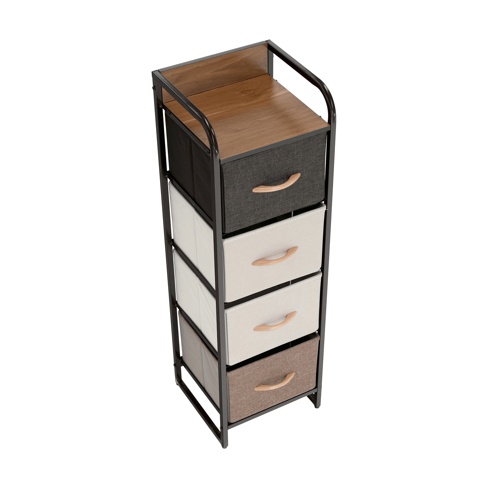 Materiál: MDF / kov / látka / plast Barva: béžová / světlehnědá / tmavohnědá Rozměry (ŠxHxV): 31x29x99 cm Tloušťka vrchního plátu: 1,2 cm čtyři šuplíky kovová konstrukce látkové šuplíky S dřevěnými úchytkami Dodávané v demontu