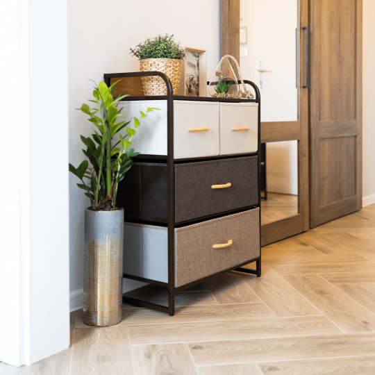Komoda s látkovými šuplíky, béžová/hnědá, HAZEL TYP 3