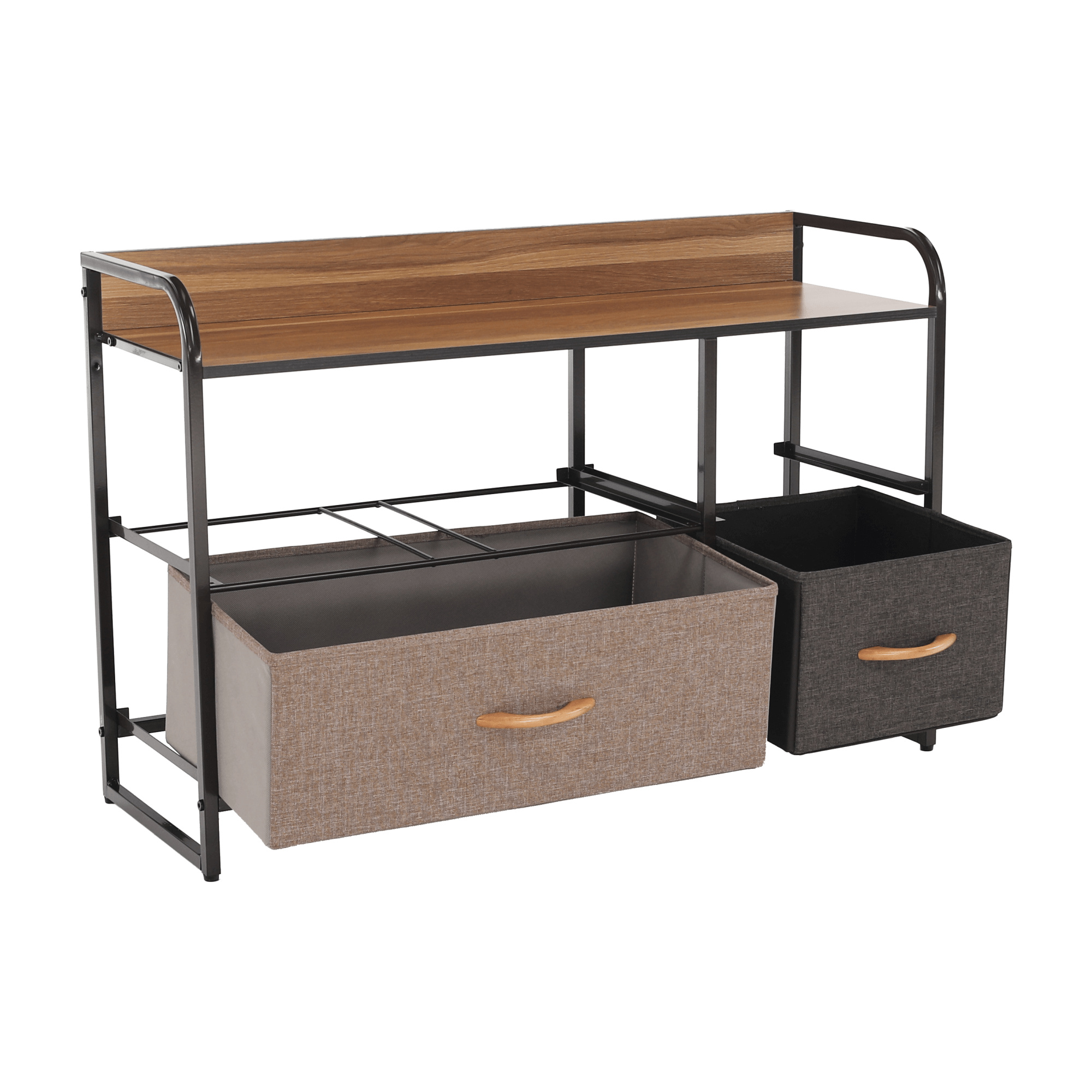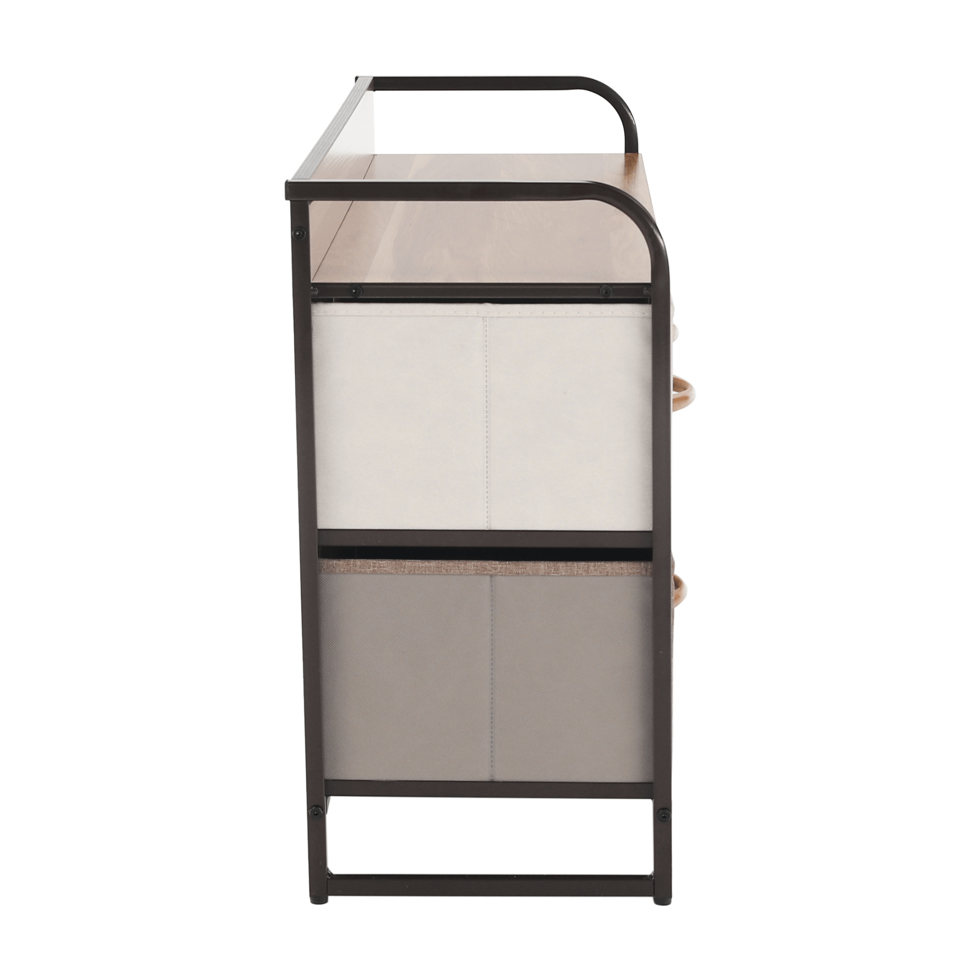 Materiál: MDF / kov / látka / plast Barva: béžová / světlehnědá / tmavohnědá Rozměry (ŠxHxV): 58x29x78,5 cm Tloušťka vrchního plátu: 1,2 cm čtyři šuplíky kovová konstrukce látkové šuplíky S dřevěnými úchytkami Dodávané v demontu Hmotnost: 8.71kg