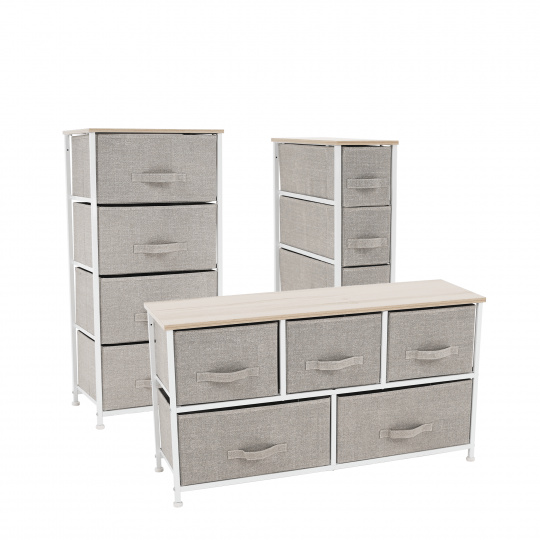 Komoda s látkovými šuplíky, světlešedá/bílá/béžová, OFELIA TYP 2