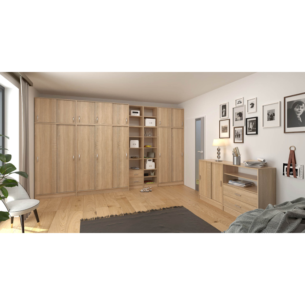 Skříň BETTY 4 třídveřová s posuvnými dveřmi s nástavcem. Materiál: DTD laminovaná Barva: dub sonoma Rozměry (ŠxHxV): 133,7x58,4x240 cm Hloubka lamina: 1,6 cm Slovenský výrobek. Dodávané v demontu. Hmotnost: 138.5kg