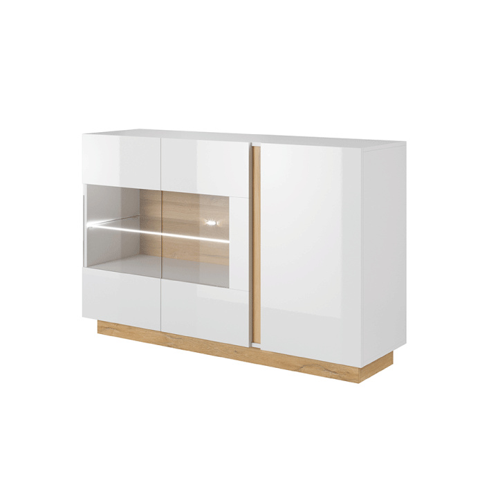 Komoda se sklem, bílá / dub grandson / bílý lesk, CITY