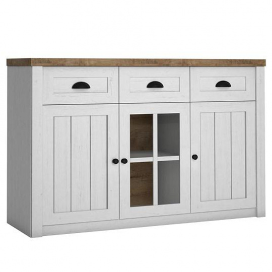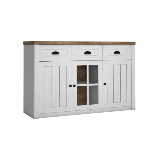 Komoda PROVANCE v barevném provedení sosna andersen / dub lefkas. Materiál laminovaná DTD / sklo. Rozměry (ŠxHxV): 130x43x88 cm Tloušťka materiálu korpus: 15 mm Tloušťka materiálu vrchní desky: 36 mm Dodávané v demontu.