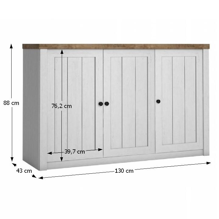 Komoda PROVANCE v barevném provedení sosna andersen / dub lefkas. Rozměry (ŠxHxV): 130x43x88 cm Tloušťka materiálu korpus: 15 mm Tloušťka materiálu vrchní desky: 36 mm Dodávané v demontu.