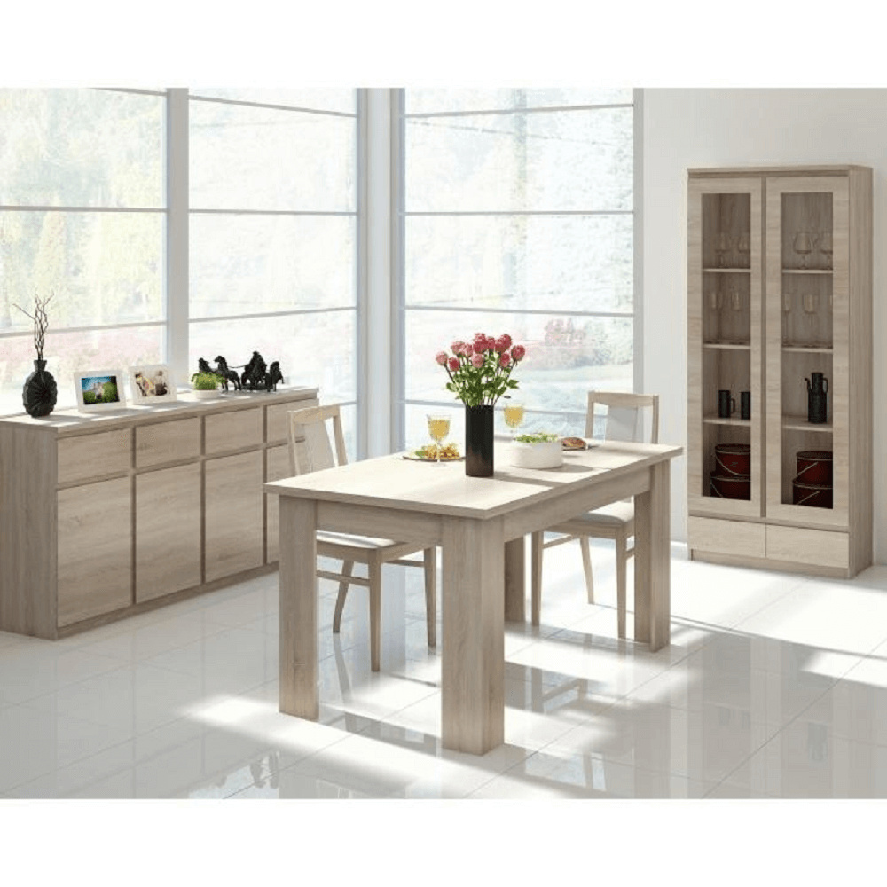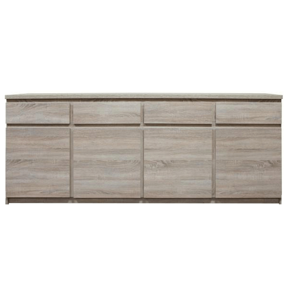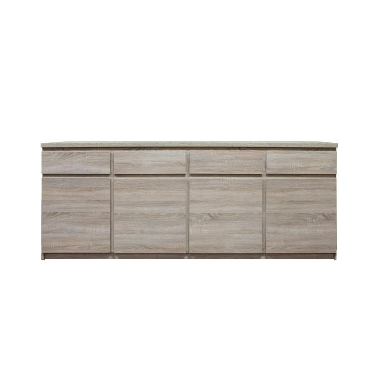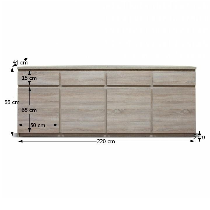 Komoda, čtyřdveřová, čtyřzásuvková, TYP 11. Materiál: DTD laminovaná, ABS hrany. Barevné provedení: dub sonoma. Rozměry ŠxHxV: 220x41x88 cm. Tloušťka materiálu korpus: 16 mm Tloušťka materiálu vrchní desky: 25 mm Dodávané v demontu.