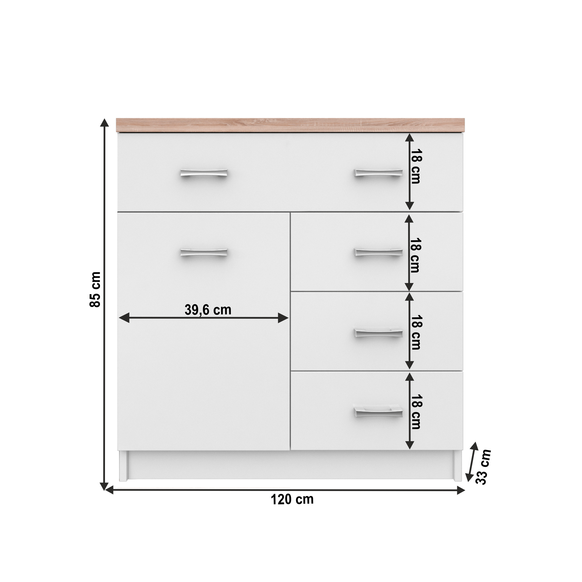 Komoda 1D4S, bílá / dub sonoma, TOPTY TYP 12