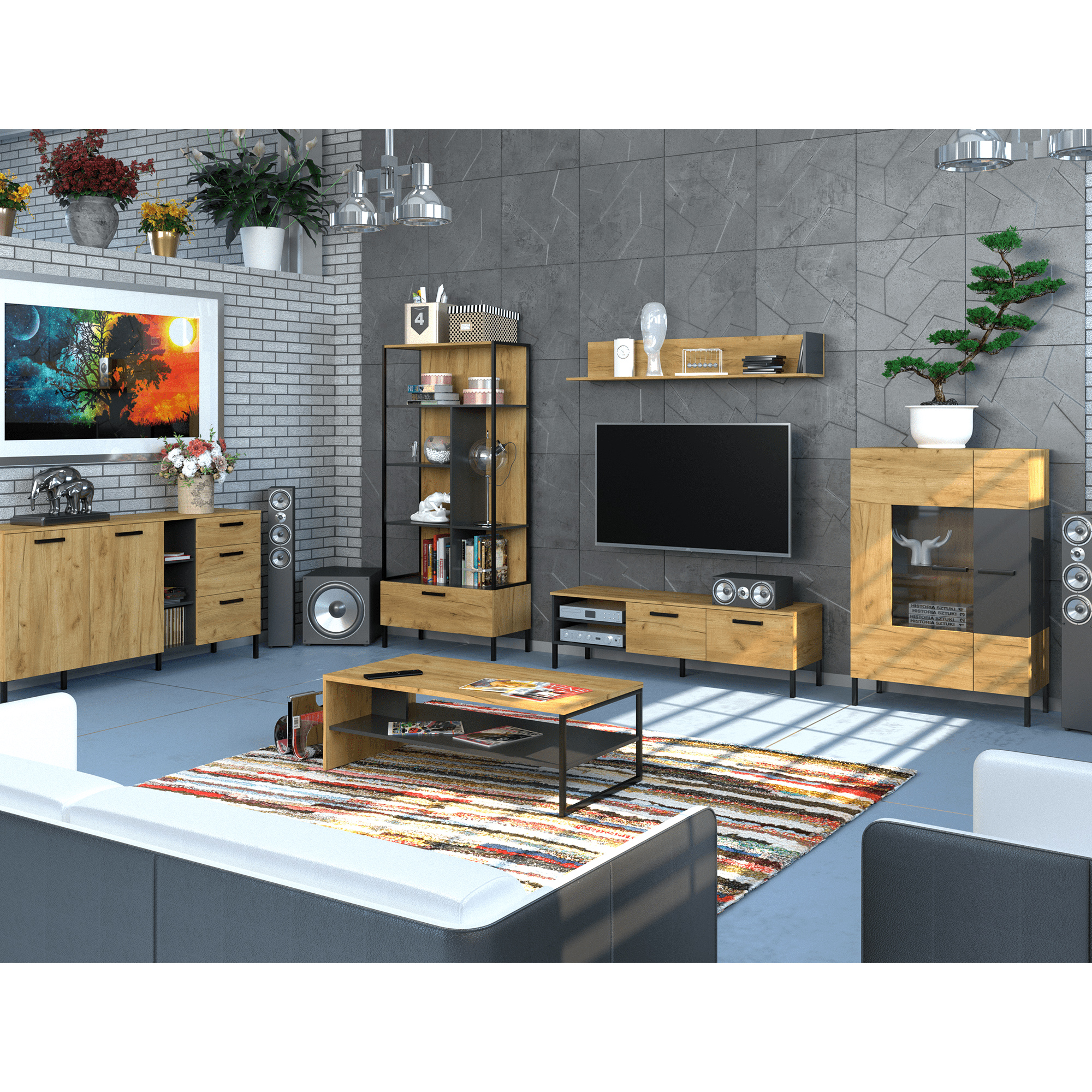 Konferenční stolek SANTANA 120 Materiál: DTD laminovaná Barva: dub craft zlatý/antracit Rozměry (ŠxHxV): 120x60x39,4 cm Tloušťka materiálu: 1,6 cm Police Nosnost police: 5 kg Dodávána v demontu