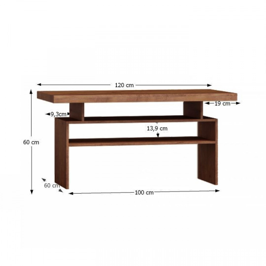 Konferenční stolek 13 z luxusního sektorového nábytku Korpus hrubý až 48 mm, Tloušťka materiálu zbývající části: 16 mm, materiál DTD laminovaná, ABS hrany. Barevné provedení: jasan světlý, Rozměry ŠxHxV: 120x60x60 cm. Dodávané v demontu.