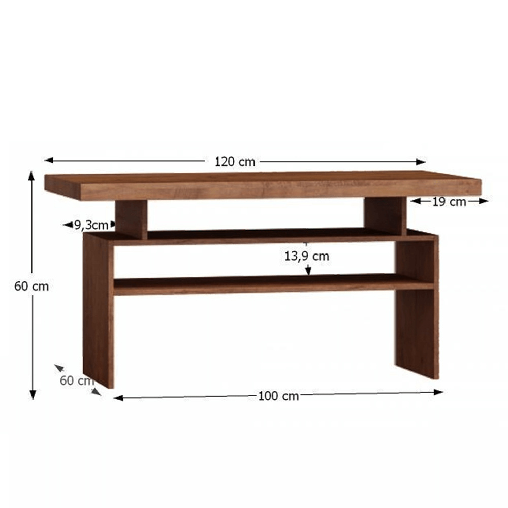 Konferenční stolek 13 z luxusního sektorového nábytku Korpus hrubý až 48 mm, Tloušťka materiálu zbývající části: 16 mm, materiál DTD laminovaná, ABS hrany. Barevné provedení: jasan světlý, Rozměry ŠxHxV: 120x60x60 cm. Dodávané v demontu.
