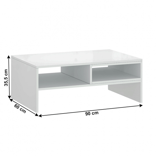 Materiál: laminovaná DTD Barva: bílá Rozměry (ŠxHxV): 90x60x35,5 cm Tloušťka materiálu: 1,6 cm Dvě otevřené police ABS hrany moderní design Dodávané v demontu