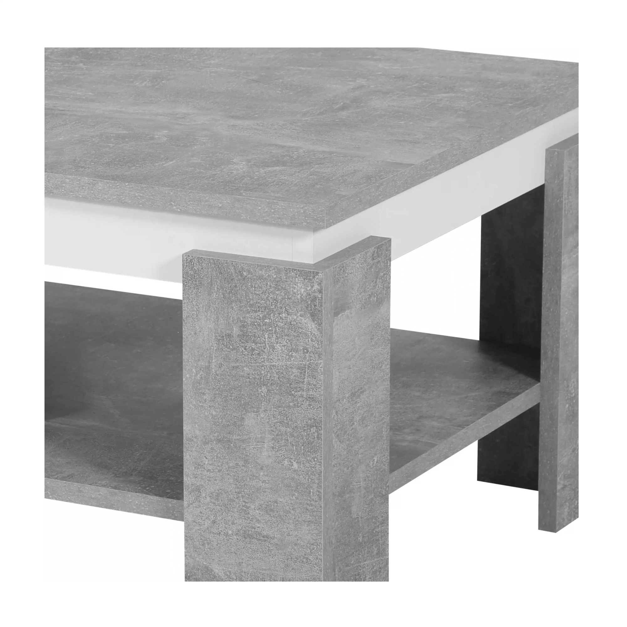 Materiál: DTD laminovaná/ABS hrany Barva: beton/bílá Rozměry (ŠxHxV): 90x60x41 cm S odkládacím prostorem Rozměry odkládacího prostoru (ŠxH): 86,5x57 cm Tloušťka vrchního platu: 1,8 cm Tloušťka korpusu: 1,6 cm Nosnost: Max. 15 kg Výška spodního prostoru od podlahy: 12,5 cm Dodáván v demontu