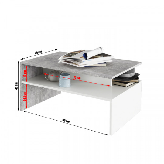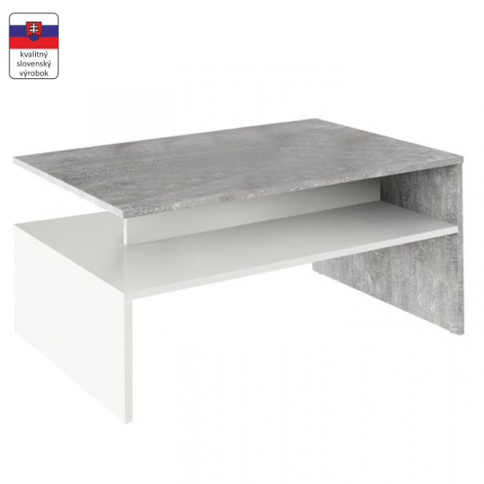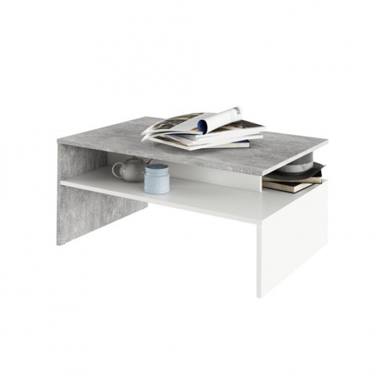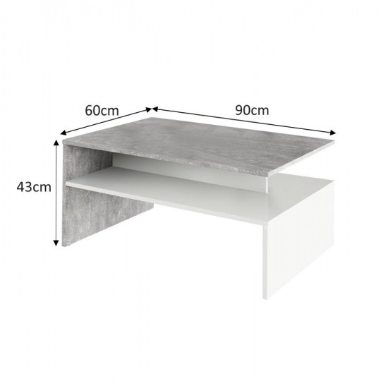 Materiál: laminovaná DTD Barva: beton / bílá Rozměry (ŠxHxV): 90x60x43 cm Tloušťka lamina: 16 mm S otevřenou úložnou plochou Dodávané v demontu