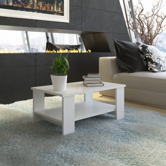 Konferenční stolek BERNARDO. Materiál: DTD laminovaná Provedení: bílý Rozměry (ŠxHxV): 90x55x40,7 cm. Tloušťka materiálu korpus: 22 mm Kvalitní slovenský výrobek Dodáván v demontu
