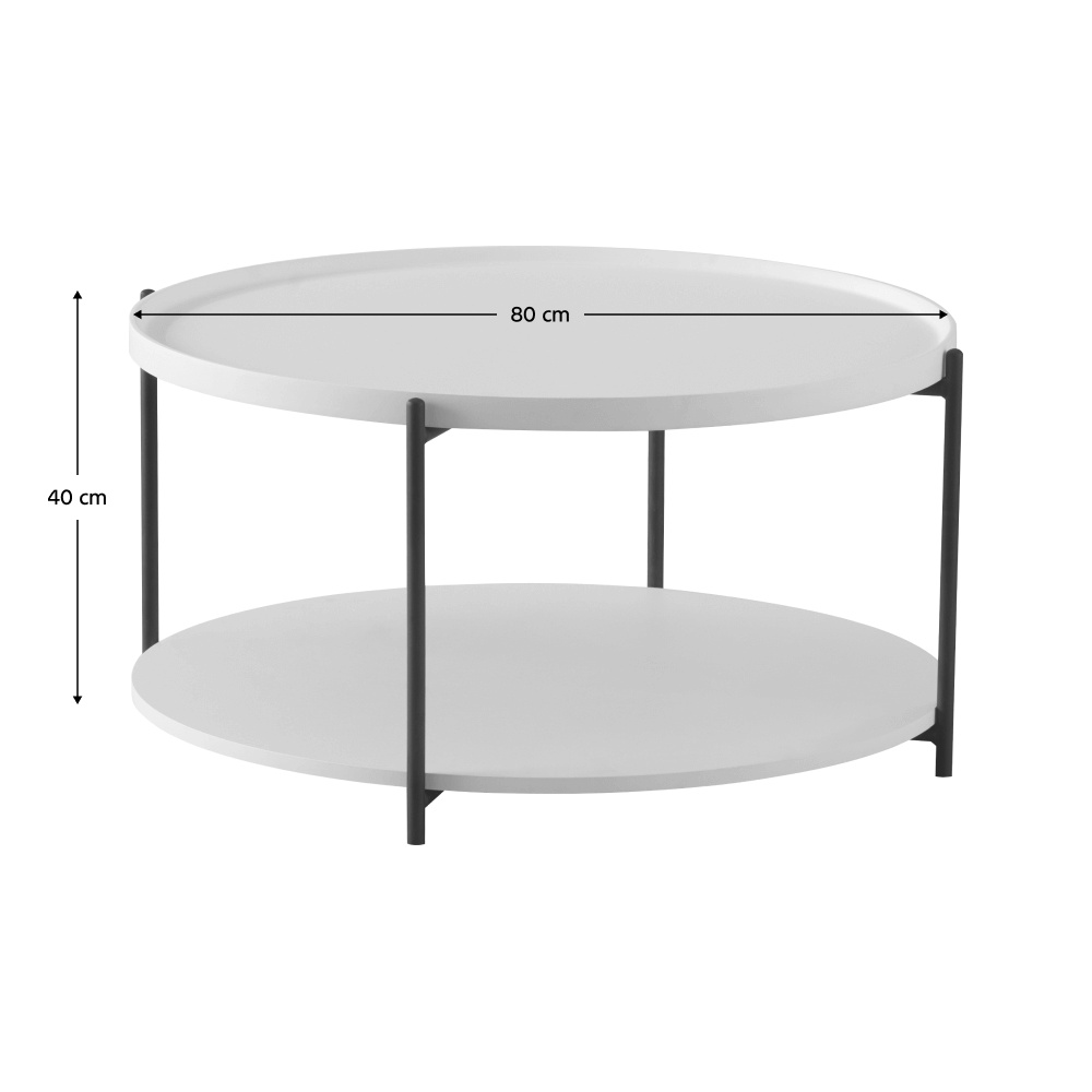Materiál: MDF/kov Barva: bílá/černá Rozměry (PrůměrxV): 80x40 cm Nosnost: 10 kg Tloušťka MDF: 1,5 cm Designový Kulatý Kokové nohy Dodáváno v demontu