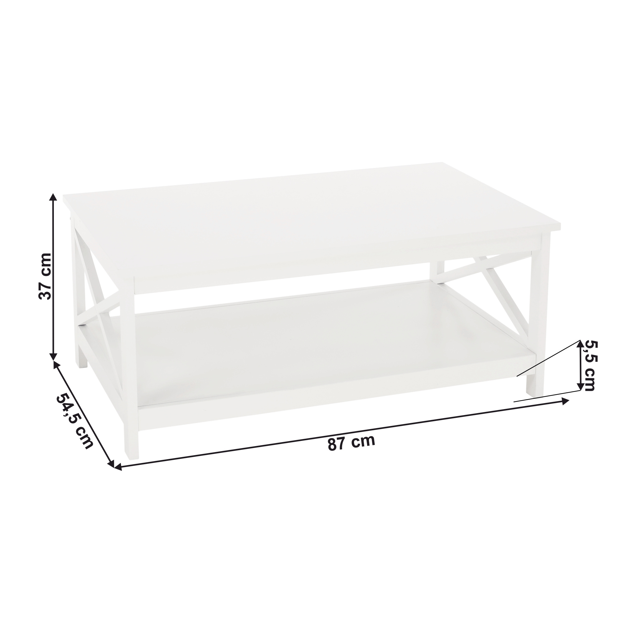 Materiál: MDF Barva: bíla Rozmery: (ŠxHxV): 87x54,5x37 cm Nosnost: 10 kg Výška nožiček: 5,5 cm S policí Dodáván v demontu