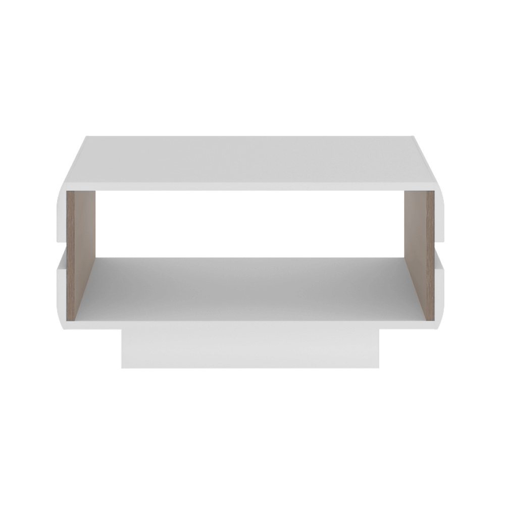 Konferenční stolek LYNATET TYP 71 Materiál: laminovaná DTD Barva: dub sonoma truflový/bílá s extra vysokým leskem Rozměry (ŠxHxV): 75x75x39 cm Tloušťka materiálu: 16 mm Moderní zaoblené hrany Nosnost: 10 kg Otevřený úložný prostor Korpus je v matném provedení Dodáváno v demontu