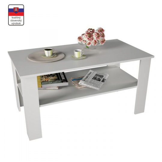 Konferenční stolek GAUDI Materiál: DTD laminovaná Provedení: bílá Rozměry (ŠxHxV): 110x60x55 cm. Tloušťka materiálu: 16 mm Kvalitní slovenský výrobek. Dodáván v demontu.