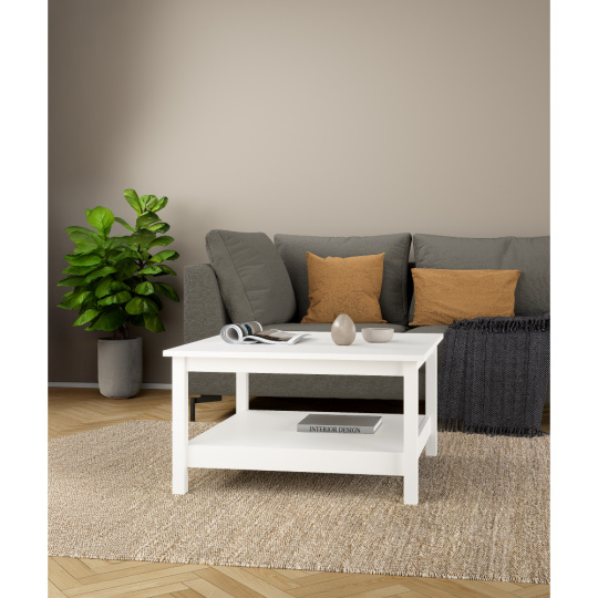 Materiál: laminovaná DTD/lakovaná MDF Barva: bílá Rozměry (ŠxHxV): 81x81x45 cm Tloušťka materiálu: 1,8 cm Na nožičkách S odkládacím prostorem Nosnost: 30 kg Dodáváno v demontu