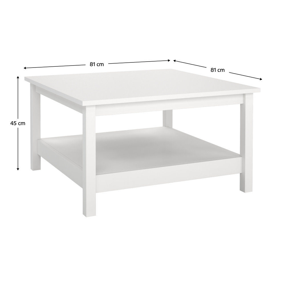 Materiál: laminovaná DTD/lakovaná MDF Barva: bílá Rozměry (ŠxHxV): 81x81x45 cm Tloušťka materiálu: 1,8 cm Na nožičkách S odkládacím prostorem Nosnost: 30 kg Dodáváno v demontu