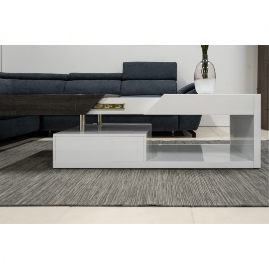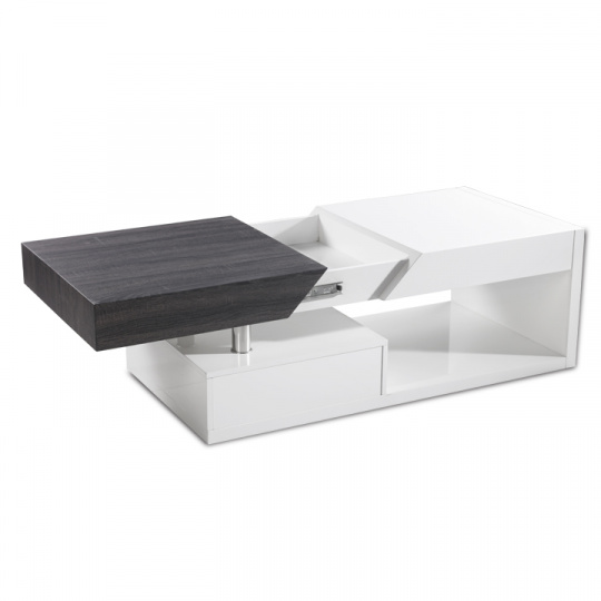 Konferenční stolek Barevné provedení: bílá HG / šedočerná s kresbou dřeva Materiál: MDF Rozměry (ŠxHxV): 120x60x43 cm Tloušťka materiálu: 12 mm Dodávané v demontu.