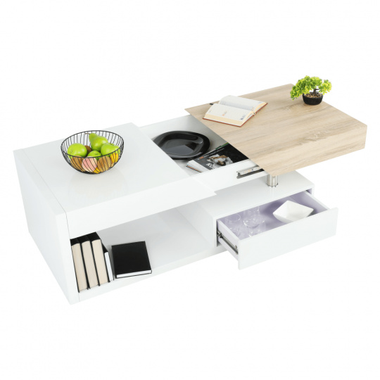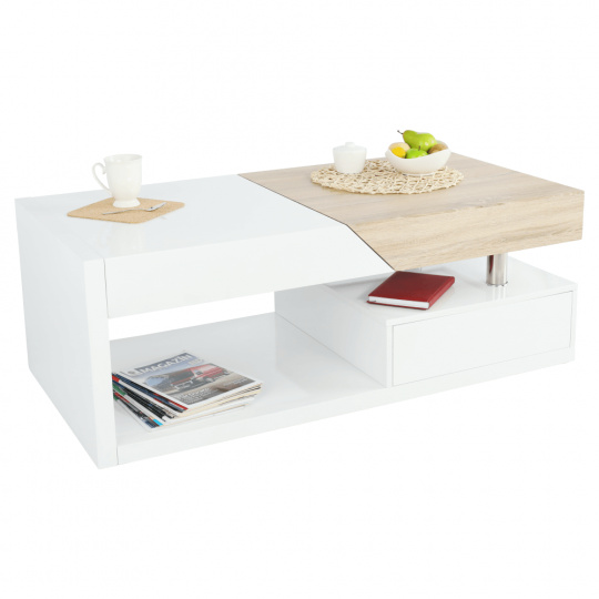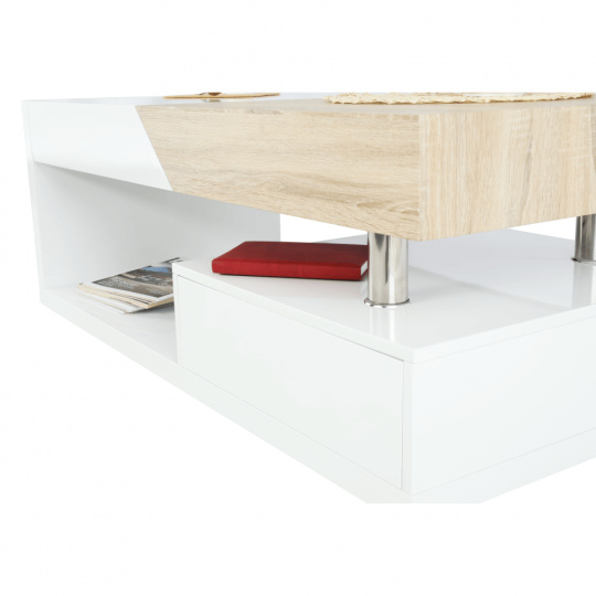 Konferenční stolek, bílý lesk/dub sonoma, MELIDA