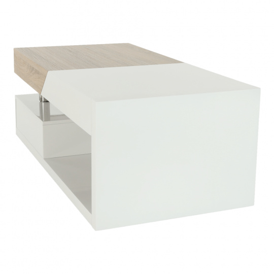 Konferenční stolek MELIDA Barevné provedení: bílá HG / dub sonoma Materiál: MDF / kov Rozměry (ŠxHxV): 120x60x43 cm Tloušťka materiálu: 12 mm Dodávané v demontu.