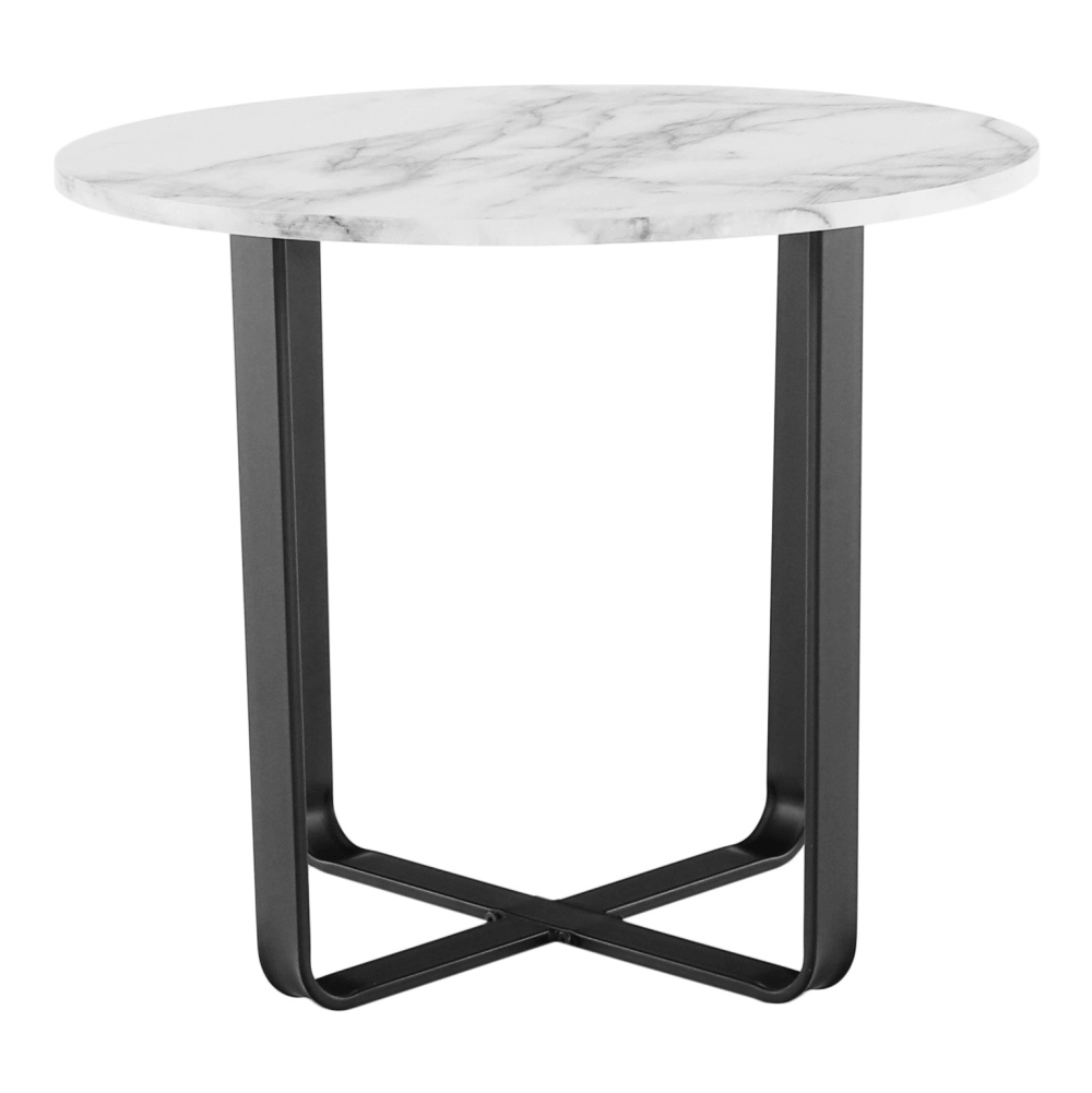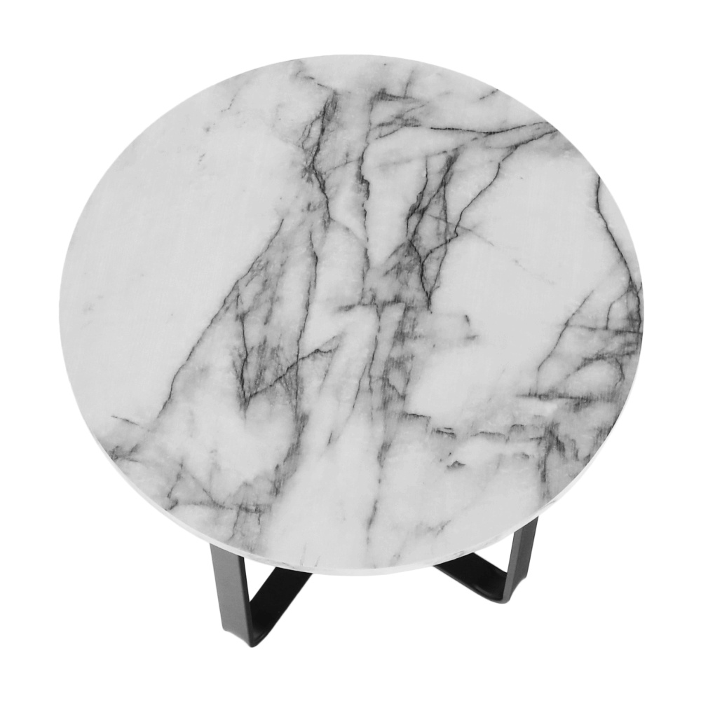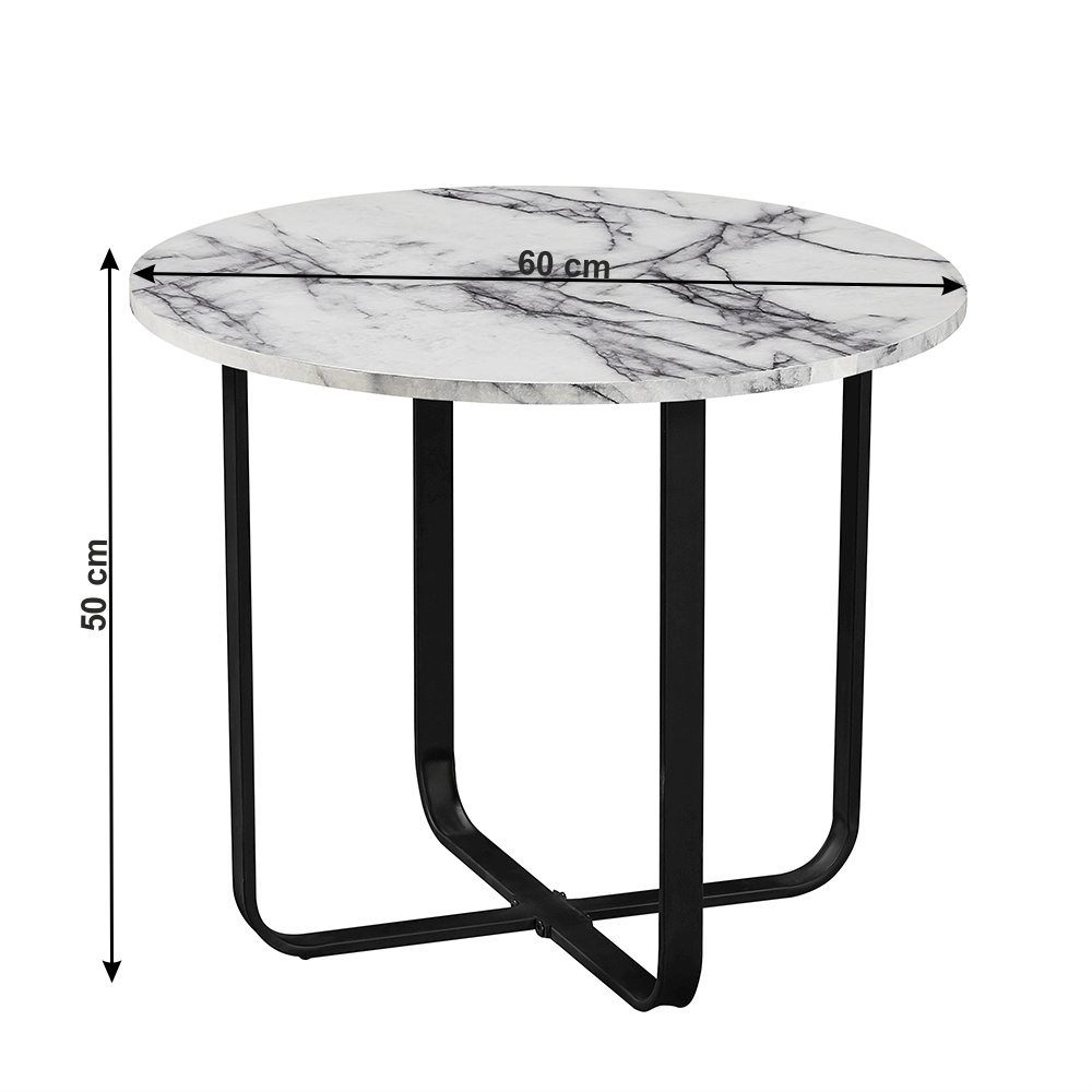 Konferenční stolek SALINO. Materiál: MDF/kov Barva: bílý mramor/černý kov Rozměry (průměr x V): 60x50 cm Designový Dodávané v demontu.