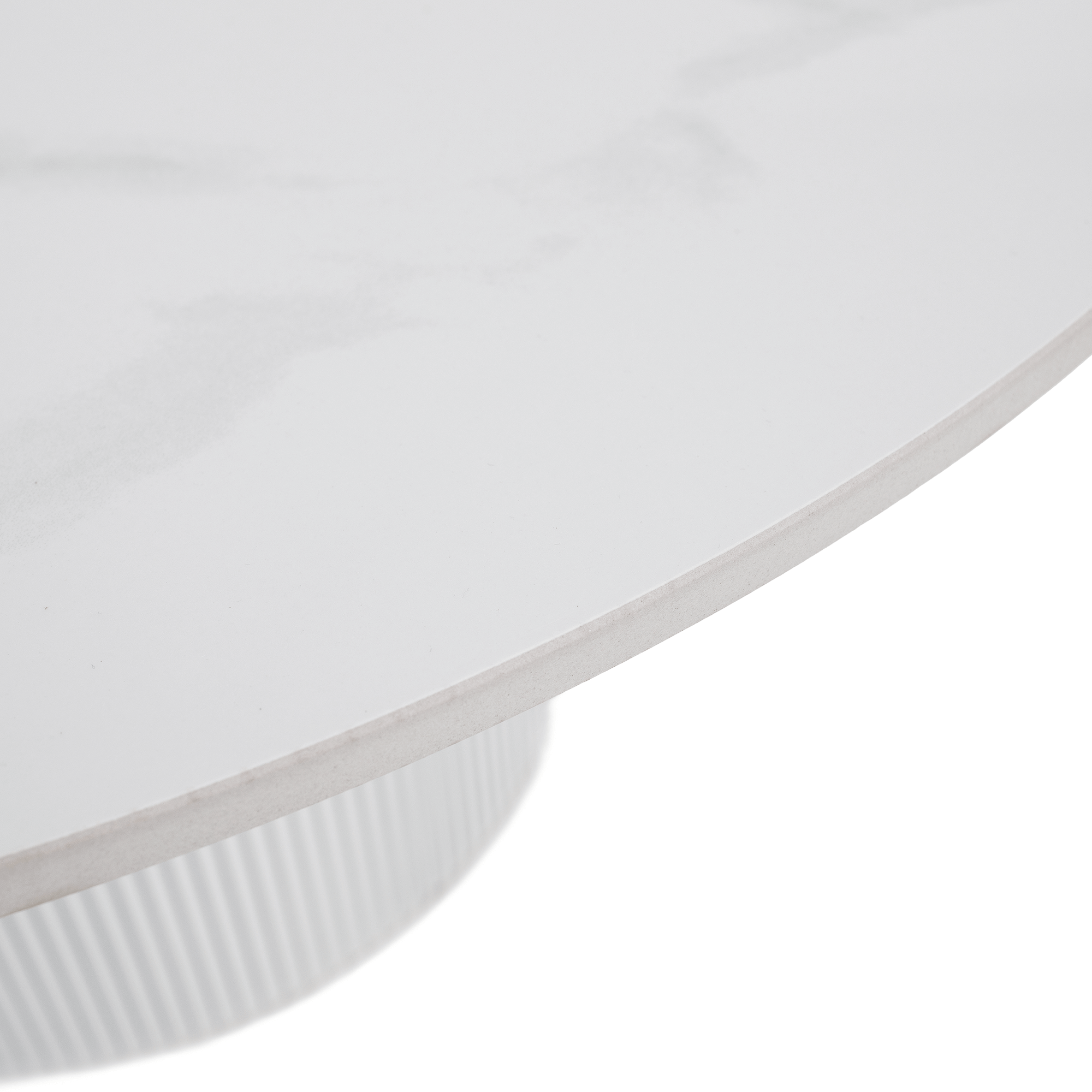 Materiál plato stolu: broušený kámen Barva: bílý mramor Konstrukce nohy: MDF Barva: bílá Rozměry (PxV): 80x38 cm Tloušťka platu stolu: 1,1 cm Nosnost: 25 kg Originální kousek Kulatý Moderní a stylový Dodáváno v demontu