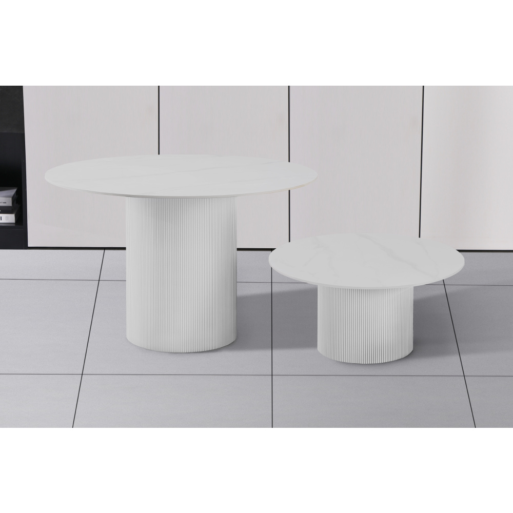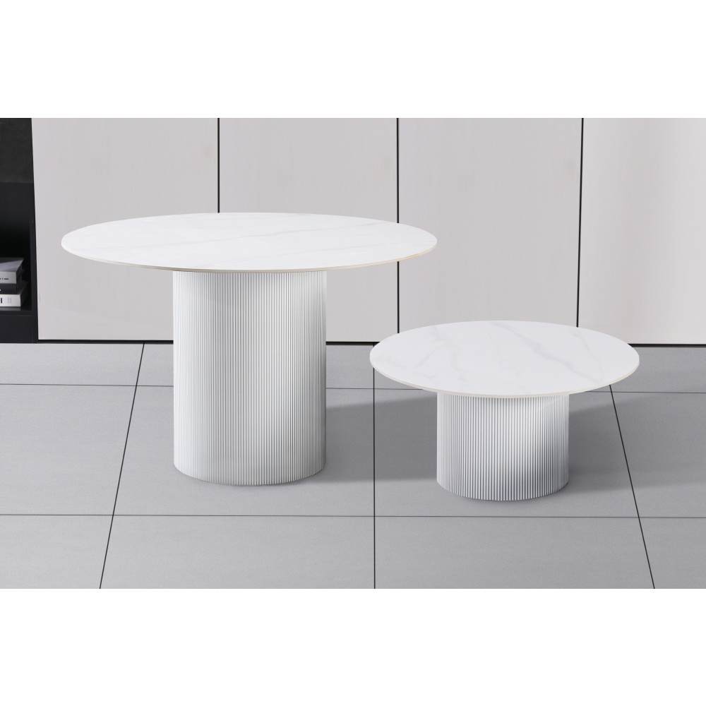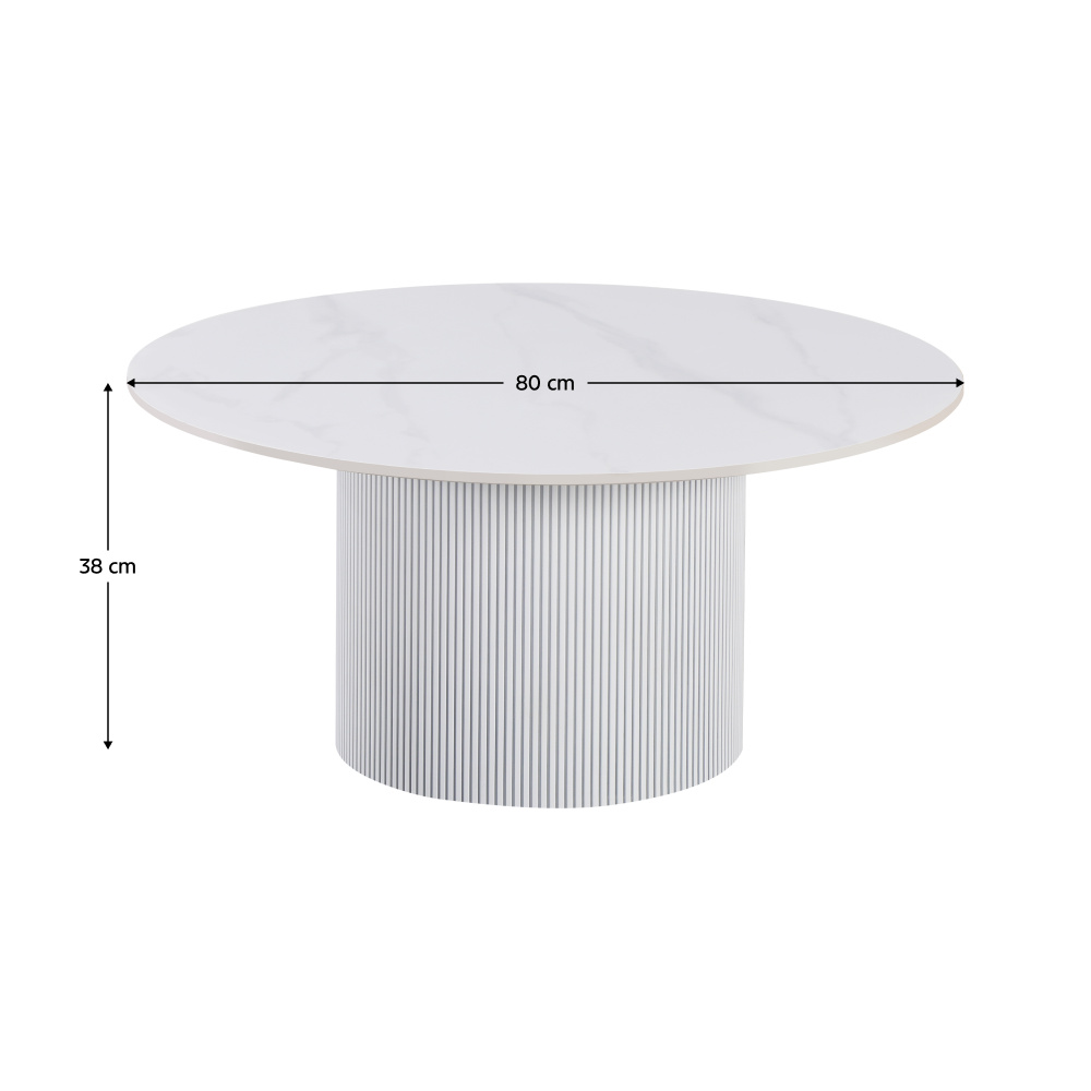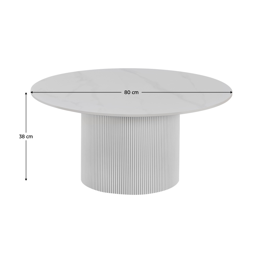 Konferenční stolek, bílý mramor/MDF, průměr 80 cm, MAHIR TYP 1