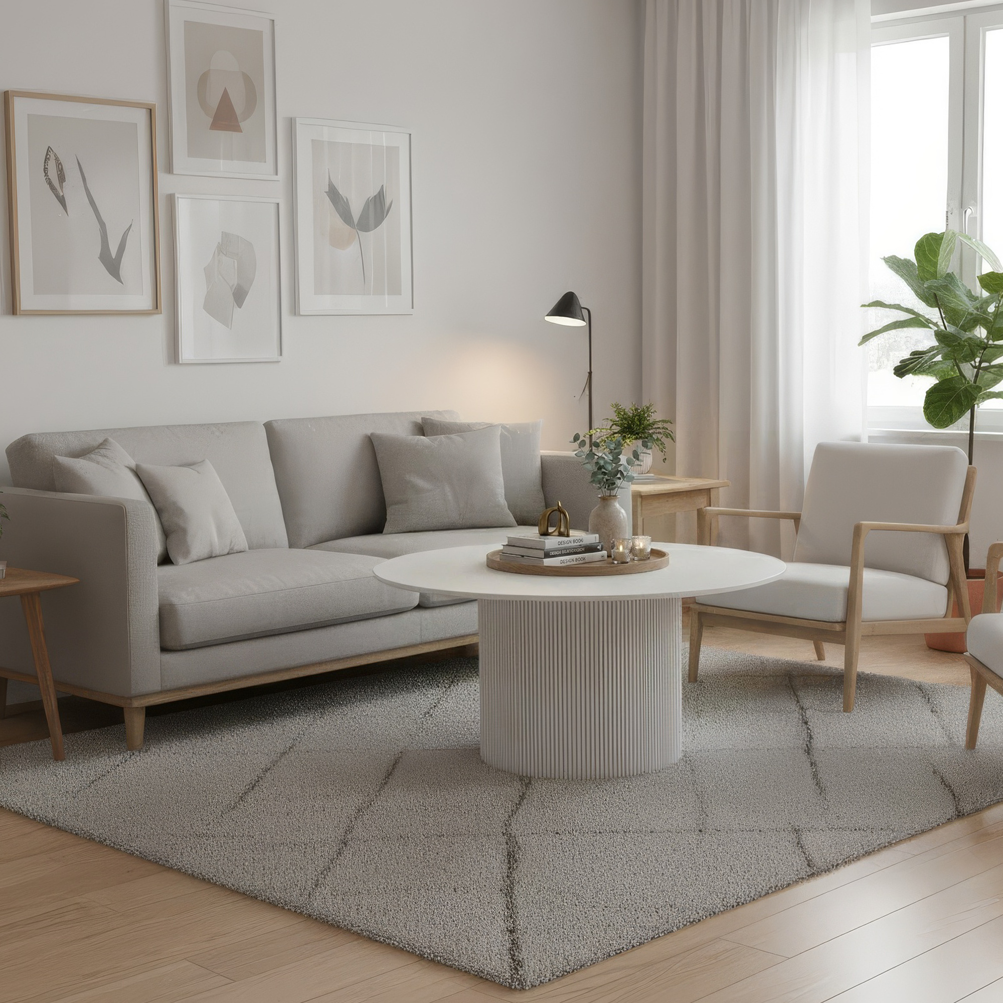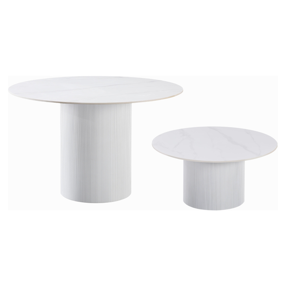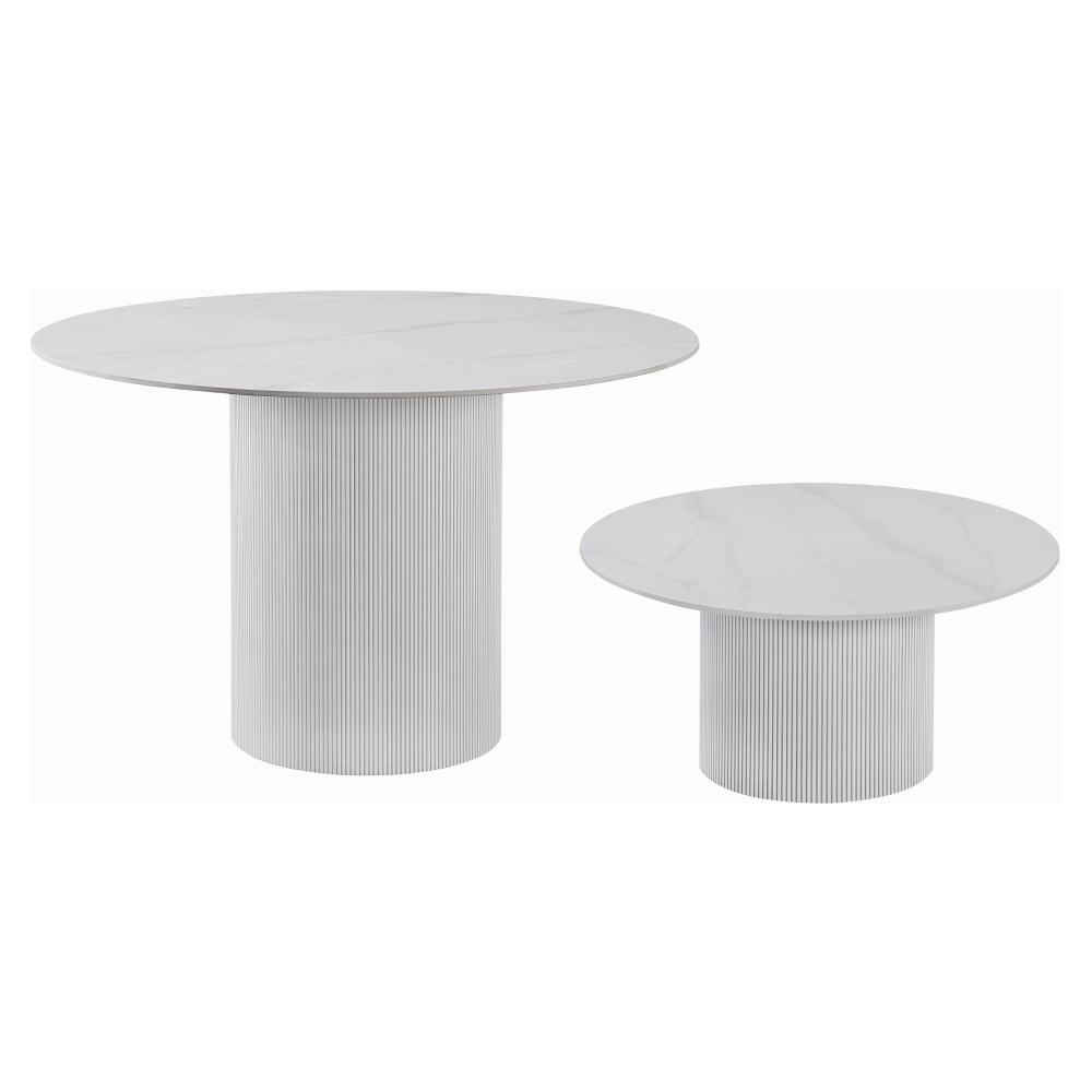 Konferenční stolek, bílý mramor/MDF, průměr 80 cm, MAHIR TYP 1
