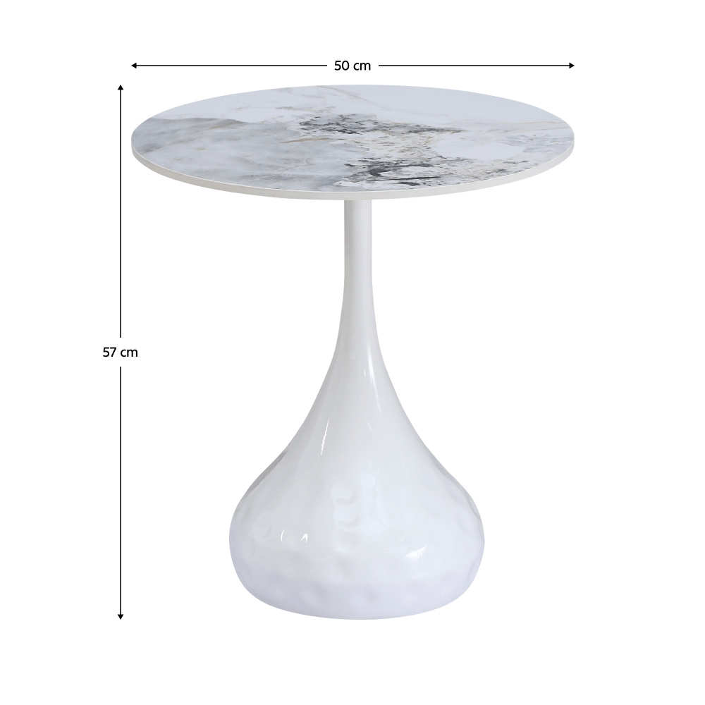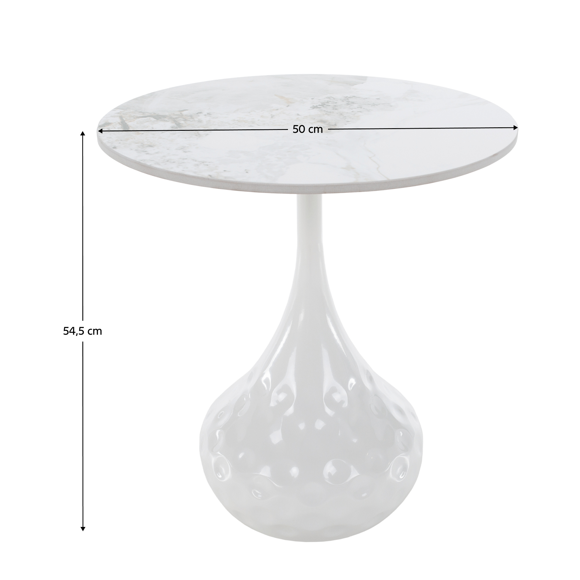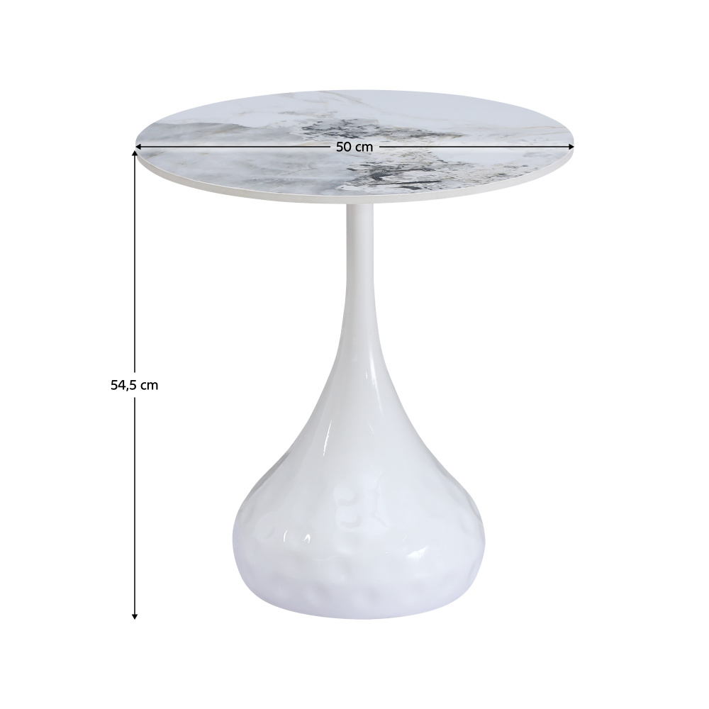 Materiál: broušený kámen/ocel Barevné provedení: bílý mramor/bílá Rozměry stolku (PxV): 50x54,5 cm Originální kousek Kulatý Moderní a stylový Tloušťka platu stolu: 1,1 cm Nosnost: 15 kg Dodáváno v demontu