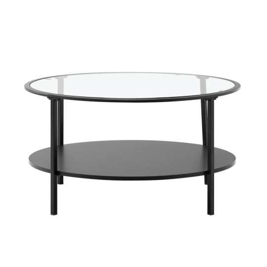 Materiál: sklo/MDF/kov Rozměry (PxV): 80x43 cm Barva: čirá/černá Tvrzené sklo Tloušťka skla: 8 mm Nosnost: 50 kg Úložný prostor Designový Kulatý Kovové nohy Dodáváno v demontu
