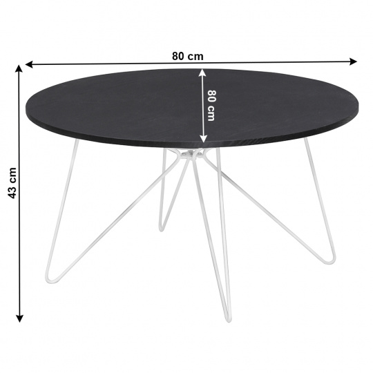Konferenční stolek. Materiál: MDF / kov Barva: černá / bílá Rozměry (ŠxHxV): 80x80x43 cm Tloušťka materiálu: 15 mm Nosnost: 7 kg Dodávané v demontu