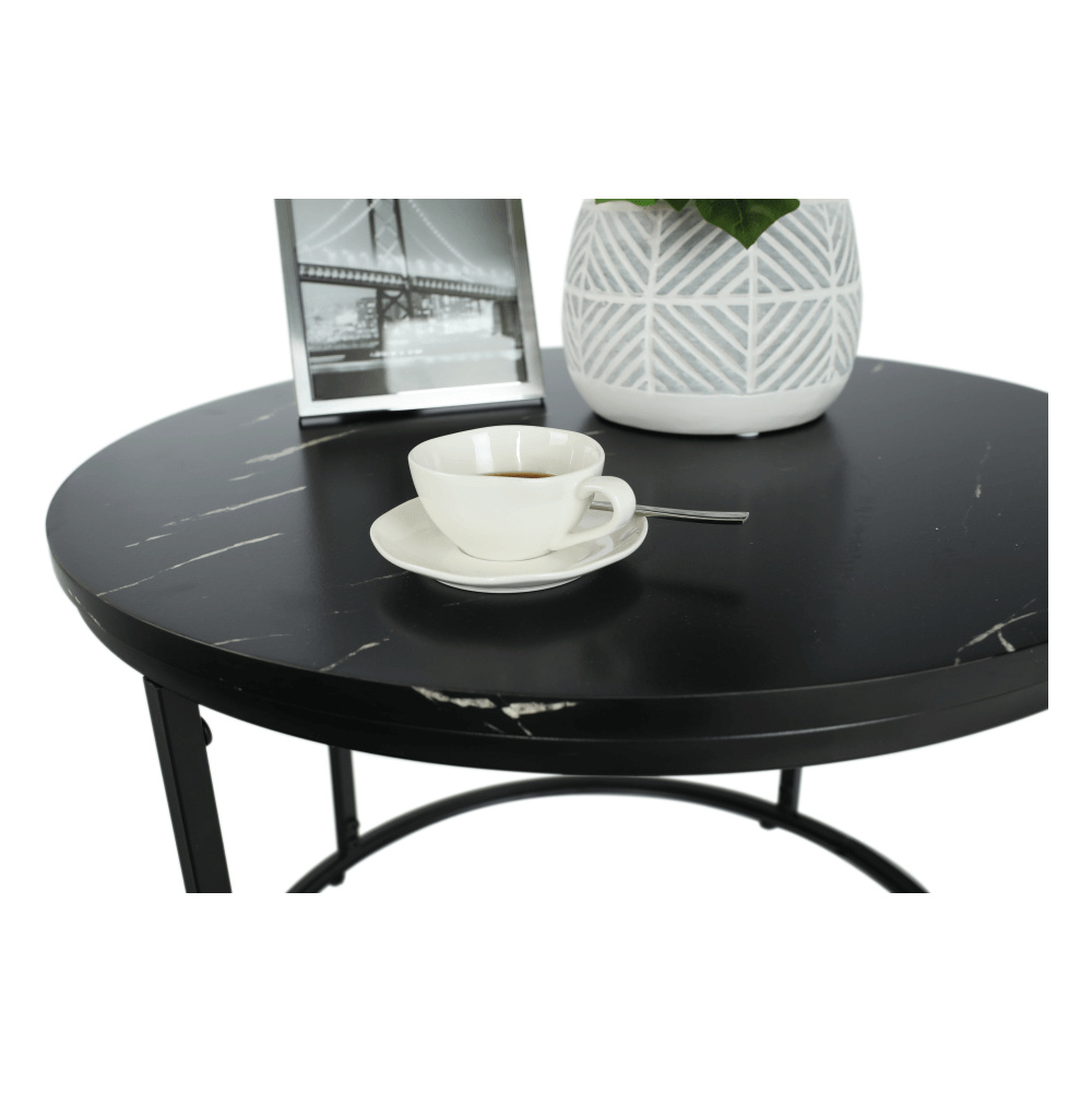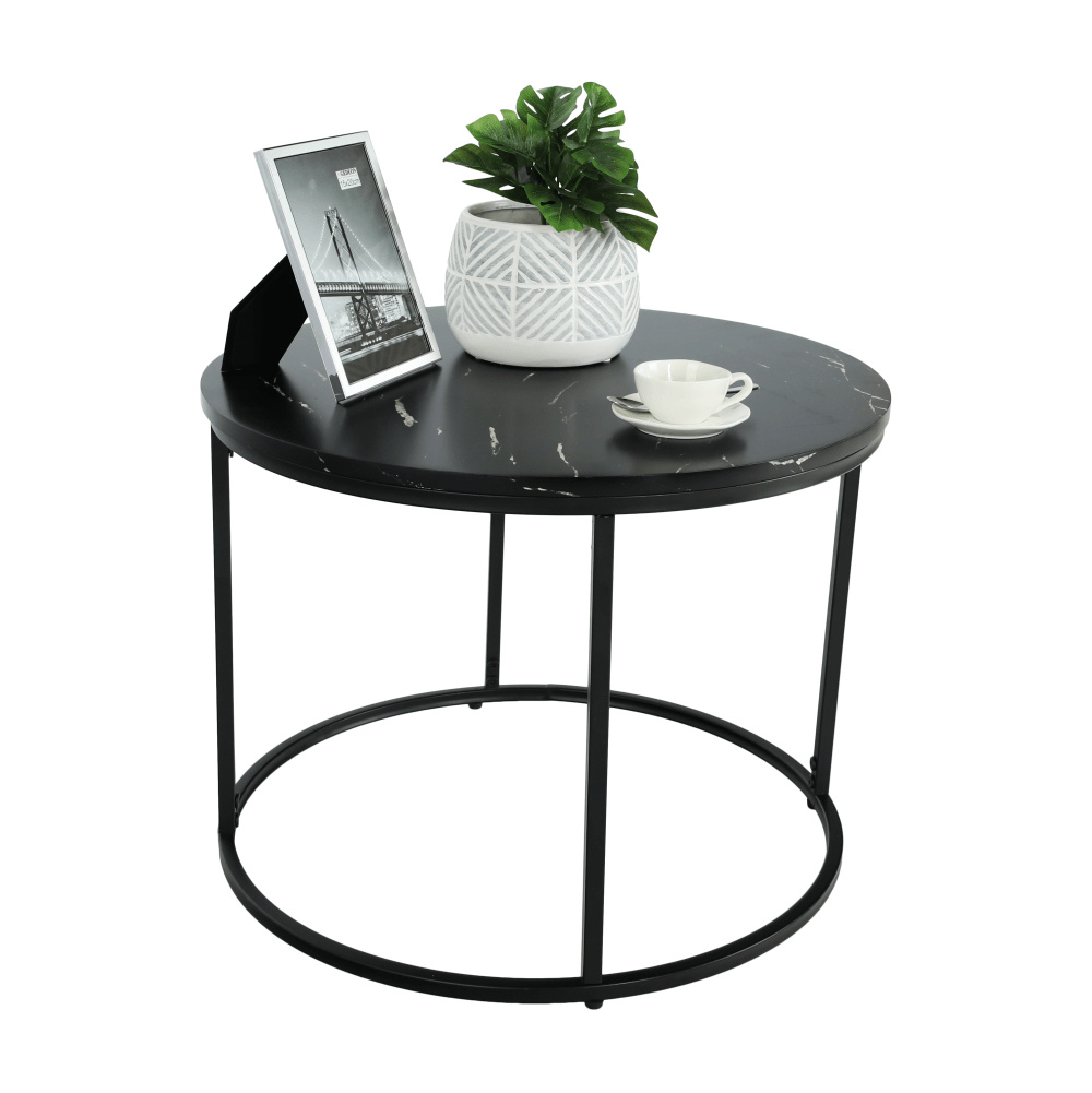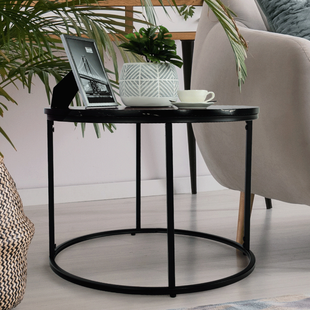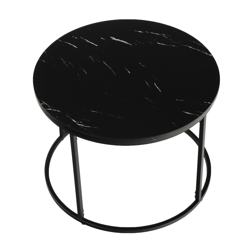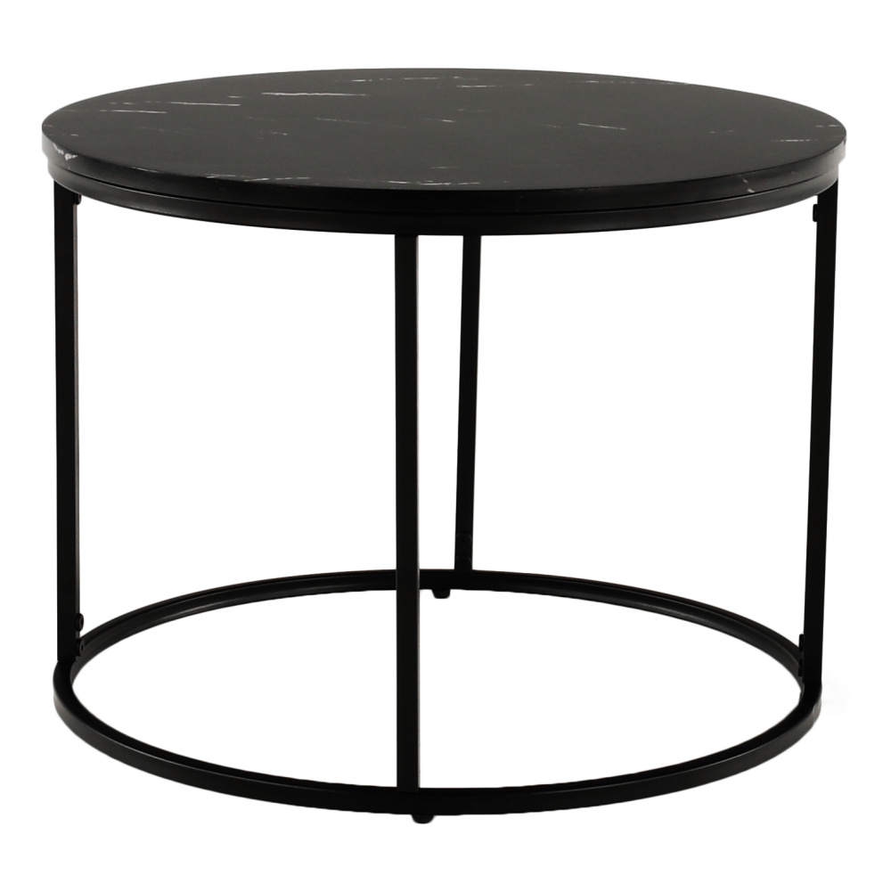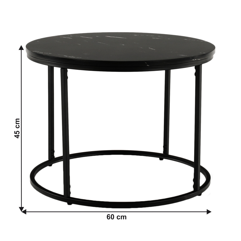 Konferenční stolek GAGIN Materiál: MDF/kov Barva: černý mramor/černý kov Rozměry (průměr x V): 60x45 cm Dodávané v demontu.