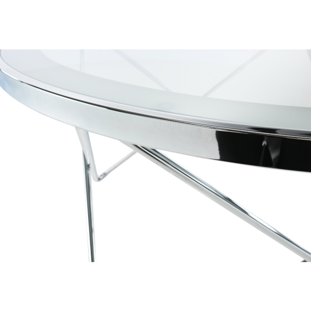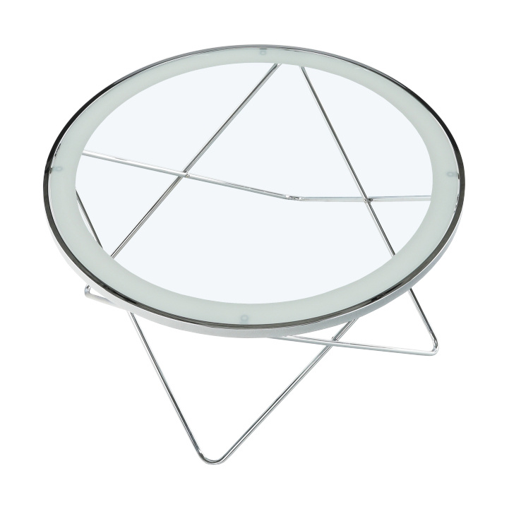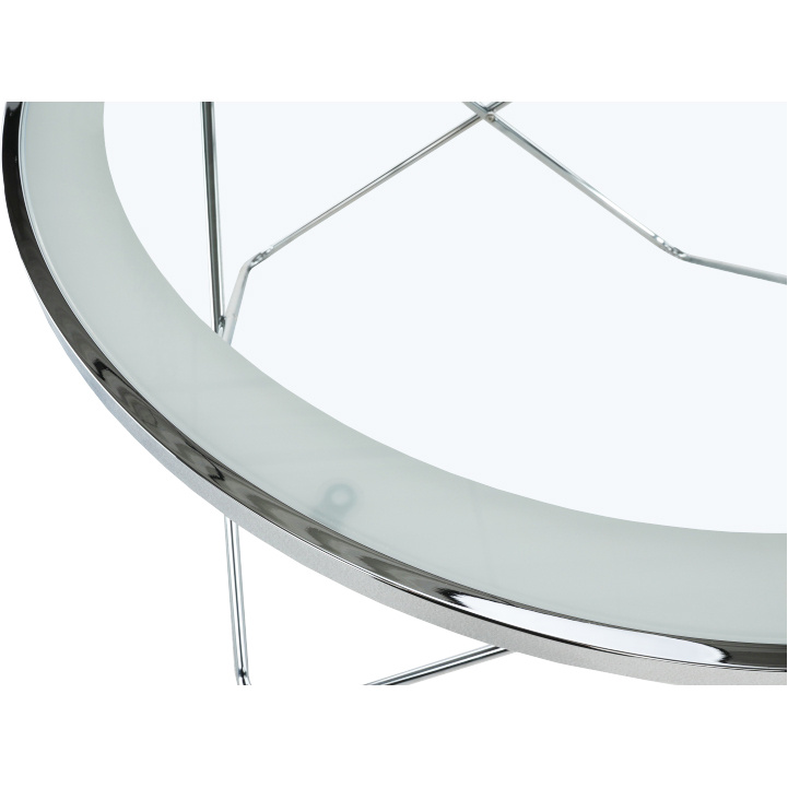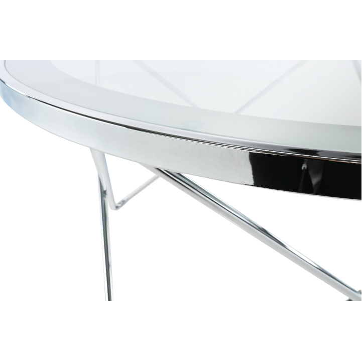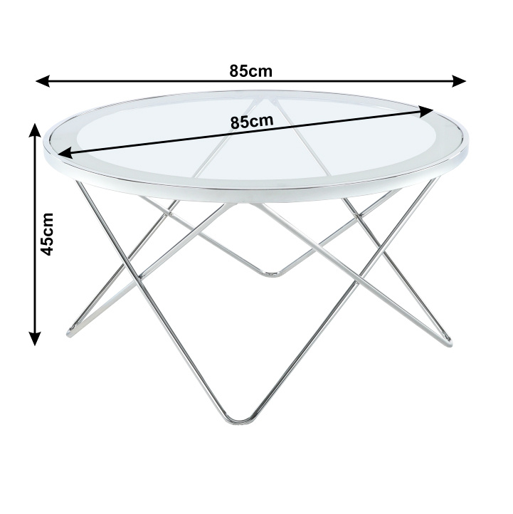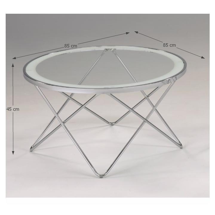 Konferenční stolek LEONEL Materiál: chrom / čiré sklo Barva: chromovaná / čiré sklo s bílým okrajem Rozměry (ŠxHxV): 85x85x45 cm Dodávané v demontu.