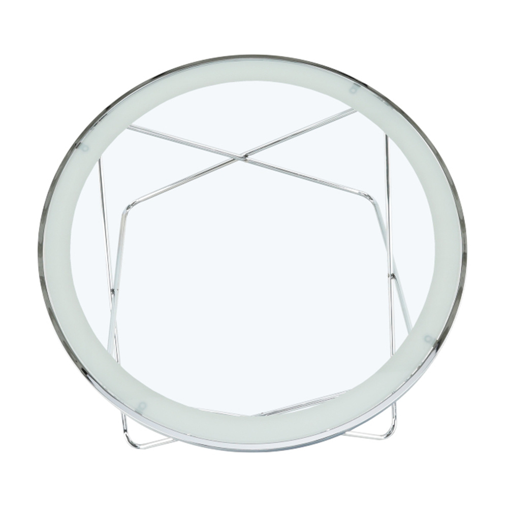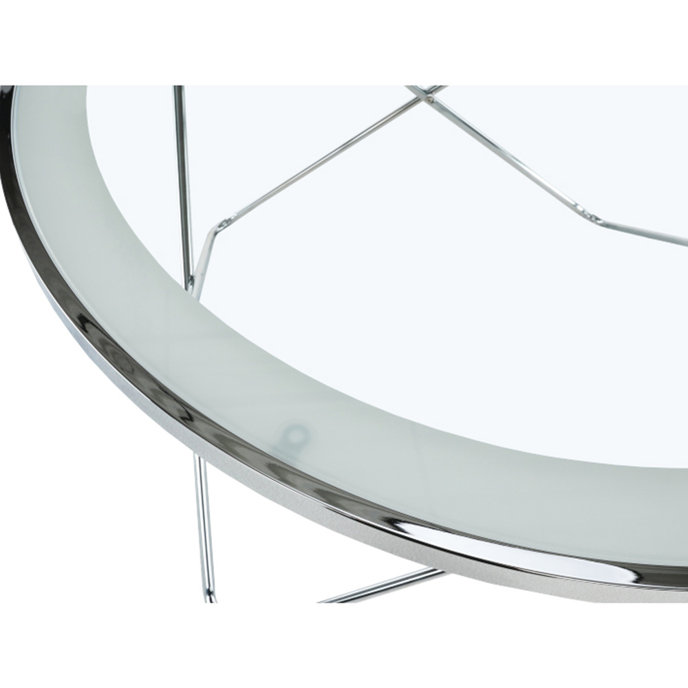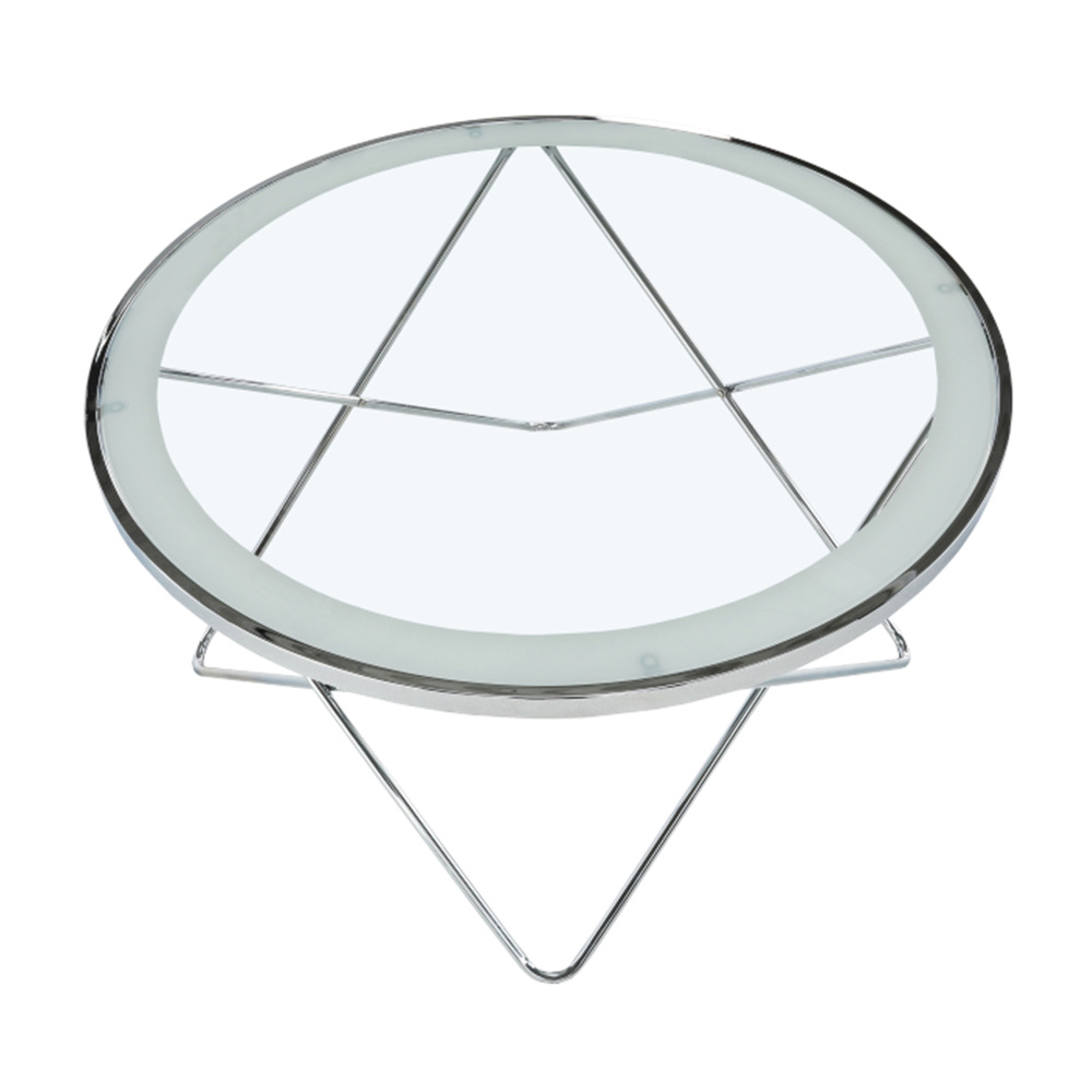Konferenční stolek LEONEL Materiál: chrom / čiré sklo Barva: chromovaná / čiré sklo s bílým okrajem Rozměry (ŠxHxV): 85x85x45 cm Dodávané v demontu.