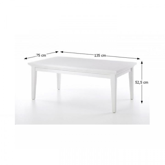 Konferenční stolek PARIS 79872 Materiál: DTD laminovaná/lakovaná MDF Barevné provedení: bílá Rozměry (ŠxHxV): 135x75x52,5 cm Tloušťka materiálu plát: 25 mm Tloušťka materiálu boky: 18 mm Dodáváno v demontu.