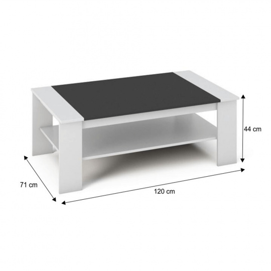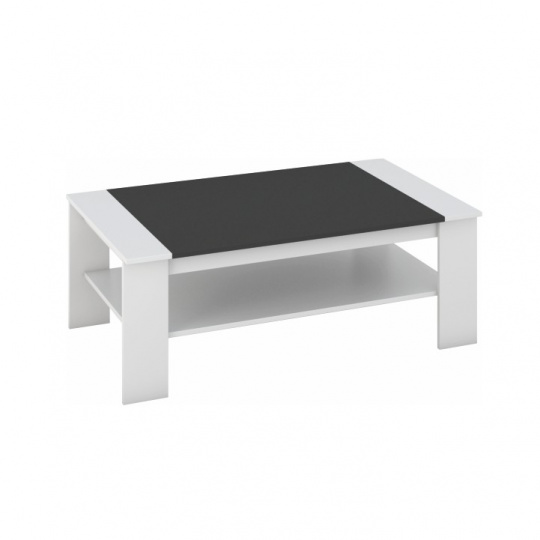 Konferenční stolek BAKER Materiál: DTD laminovaná / ABS hrany Provedení: bílá / černá Rozměry (ŠxHxV): 120x71x44 cm Tloušťka materiálu: 16 mm Dodáván v demontu.