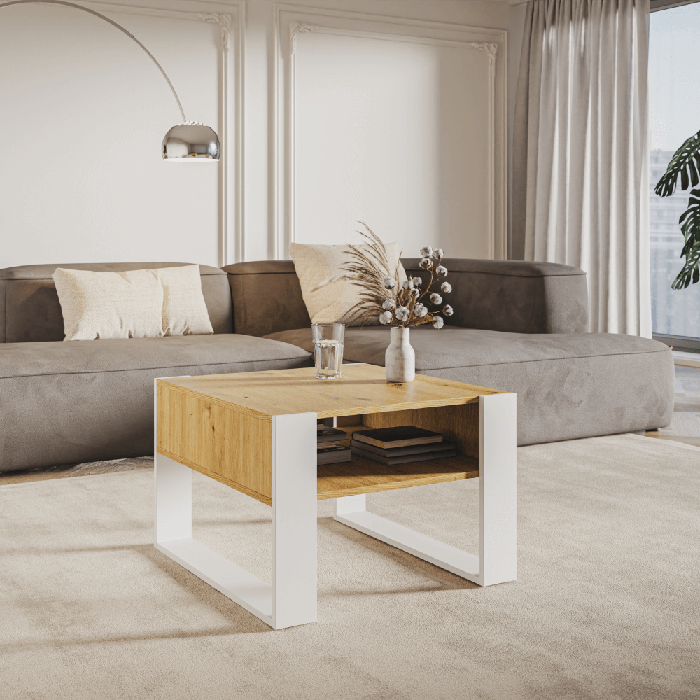 Konferenční stolek, dub artisan/bílá, CARA 2