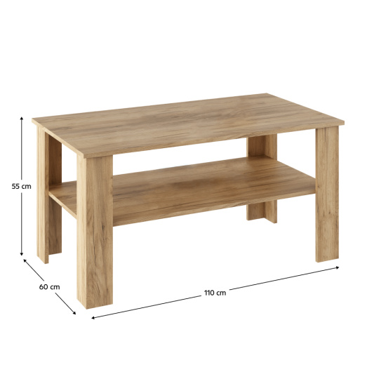 Konferenční stolek GAUDI Materiál: DTD laminovaná Provedení: dub aritsan Rozměry (ŠxHxV): 110x60x55 cm. Tloušťka materiálu: 1,6 cm Kvalitní slovenský výrobek. Dodáván v demontu.