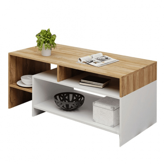 Konferenční stolek, ALICANTE Materiál: DTD laminovaná Barva: dub grandson / bílá Rozměry (ŠxHxV): 120x60x53 cm Tloušťka materiálu: 16 mm Otevřený úložný prostor. S policemi. Dodávané v demontu.