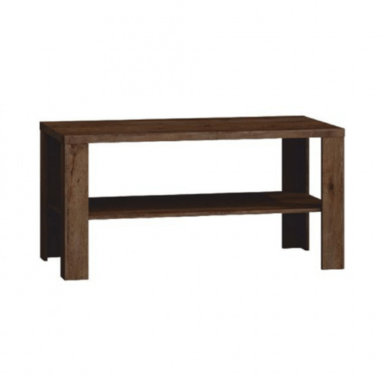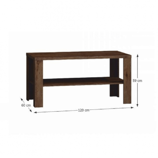 Konferenční stolek TEDY TYP T13 Materiál: laminovaná DTD/fóliovaná MDF/kov Barva: dub lefkas Rozměry (ŠxHxV): 120x60x59 cm Tloušťka materiálu: 32 mm Tloušťka materiálu zbývající části: 16 mm ABS hrany Rustikální styl Ozdobné lišty Kovové úchyty Jedna police Dodáváno v demontu